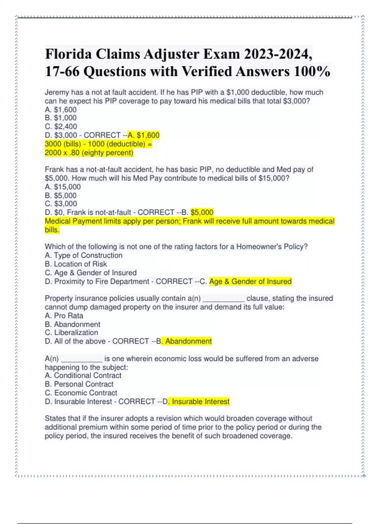 Frank has a not-at-fault accident, he has basic PIP, no deductible and Med pay of