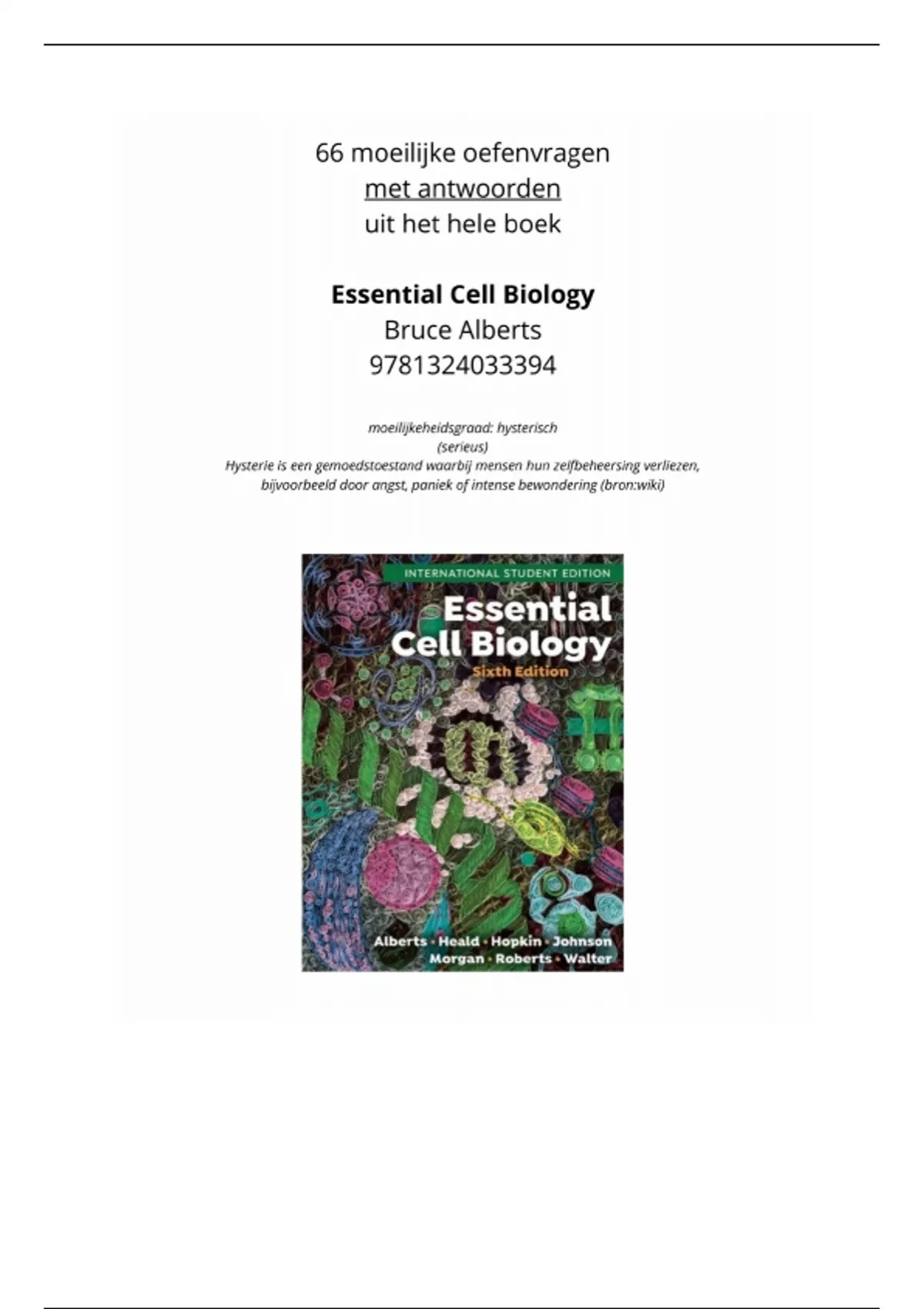 Gevorderde tentamenvragen (66) met antwoorden over het hele boek Essential Cell Biology Bruce Alberts 6e editie. Voor gevorderde studenten, niet beginners.