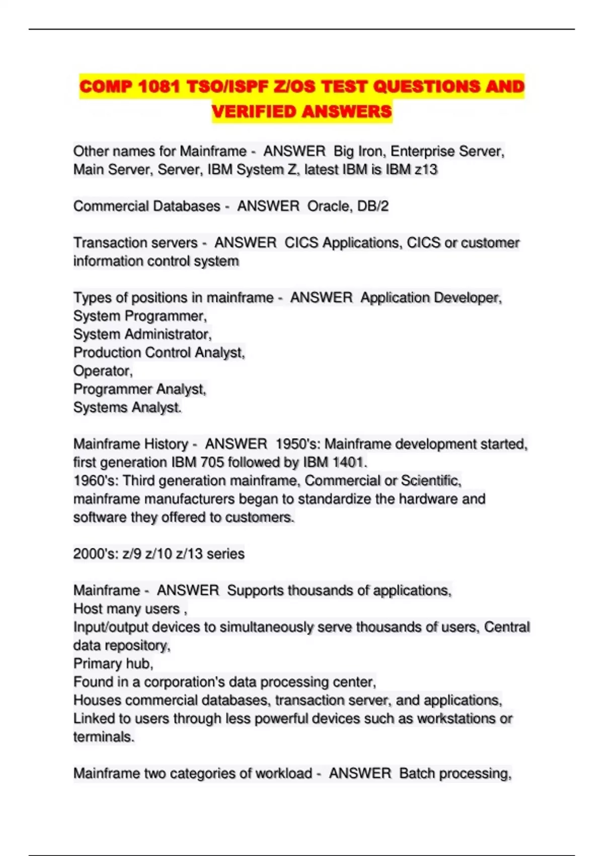 COMP 1081 TSO/ISPF Z/OS TEST QUESTIONS AND VERIFIED ANSWERS...