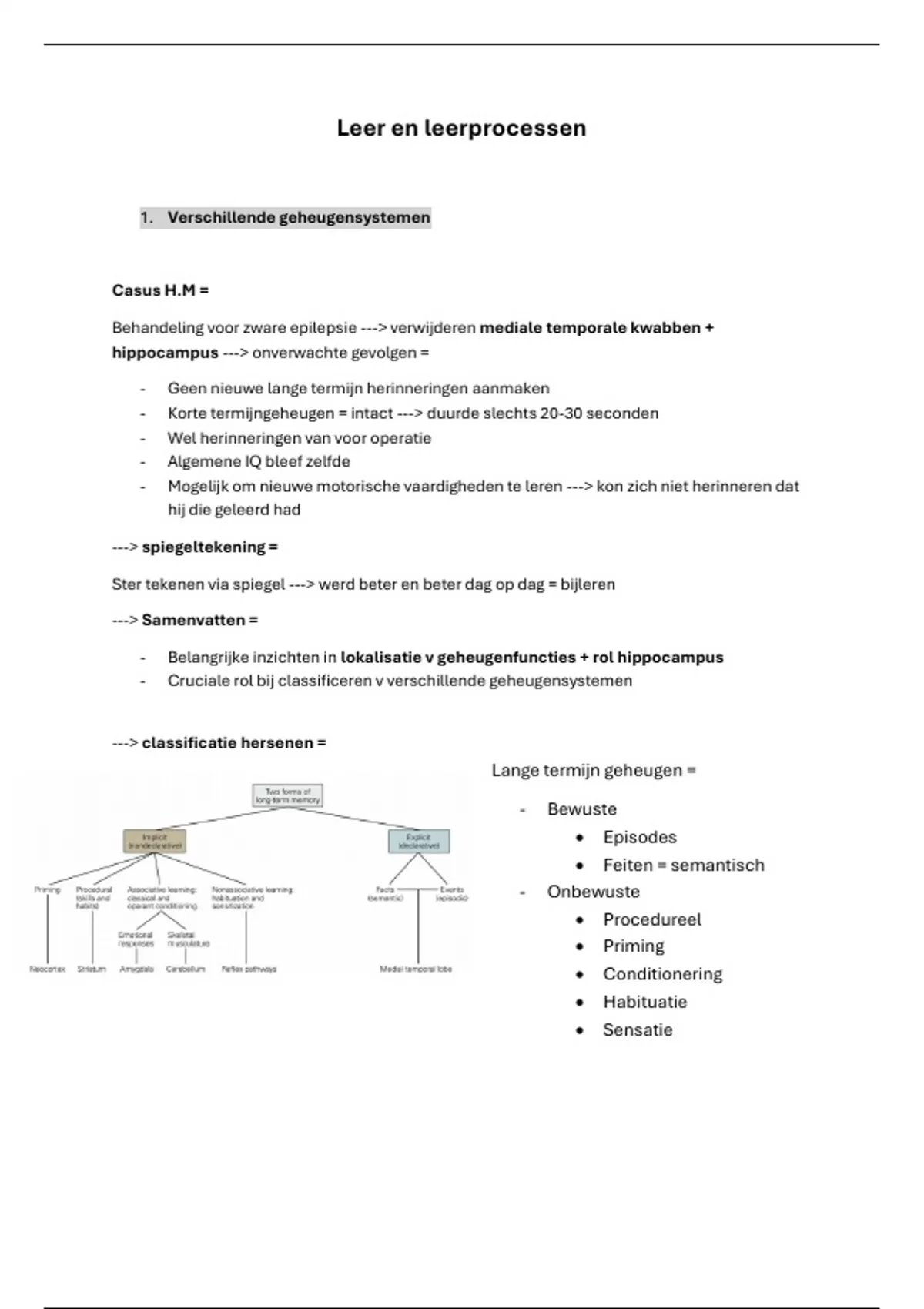 - Mogelijk om nieuwe motorische vaardigheden te leren ---> kon zich niet herinneren dat