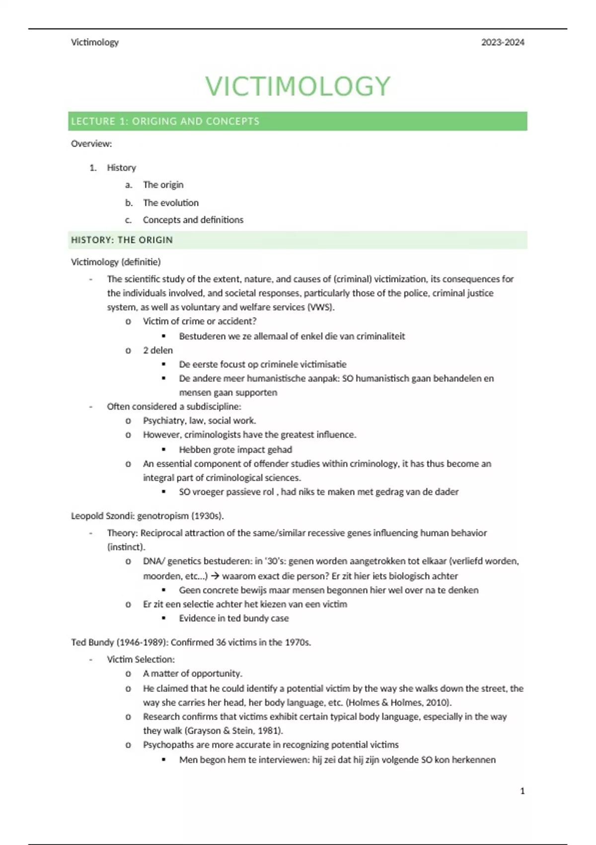 Samenvatting van het vak Victimology door Jelle Jansens. Vak van het 3de bachelor Criminologie van UGent 17/20 Engelse samenvatting MAAR af en toe nederlandse notities erbij geschreven.