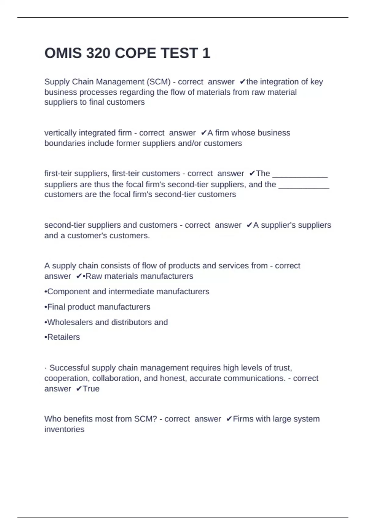 Supply Chain Management (SCM) - correct answer ✔the integration of key