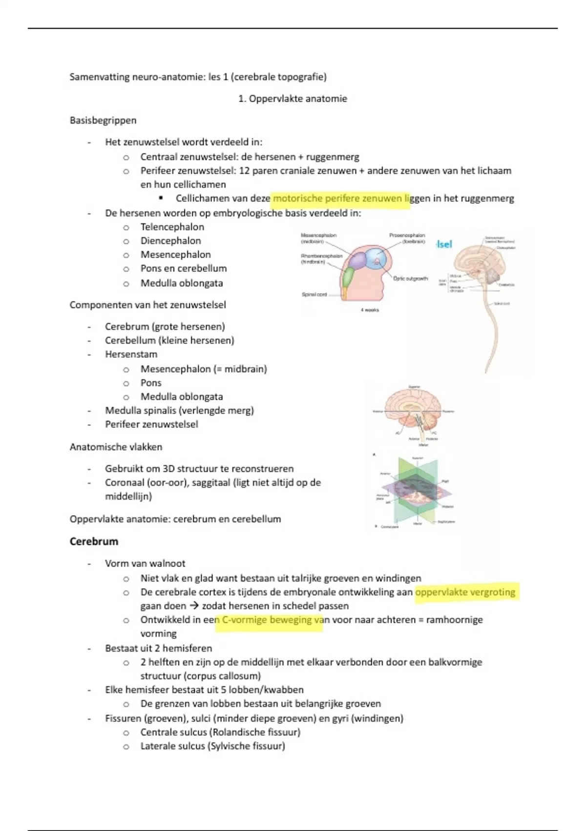 Samenvatting neuro-anatomie: les 1 (cerebrale topografie)