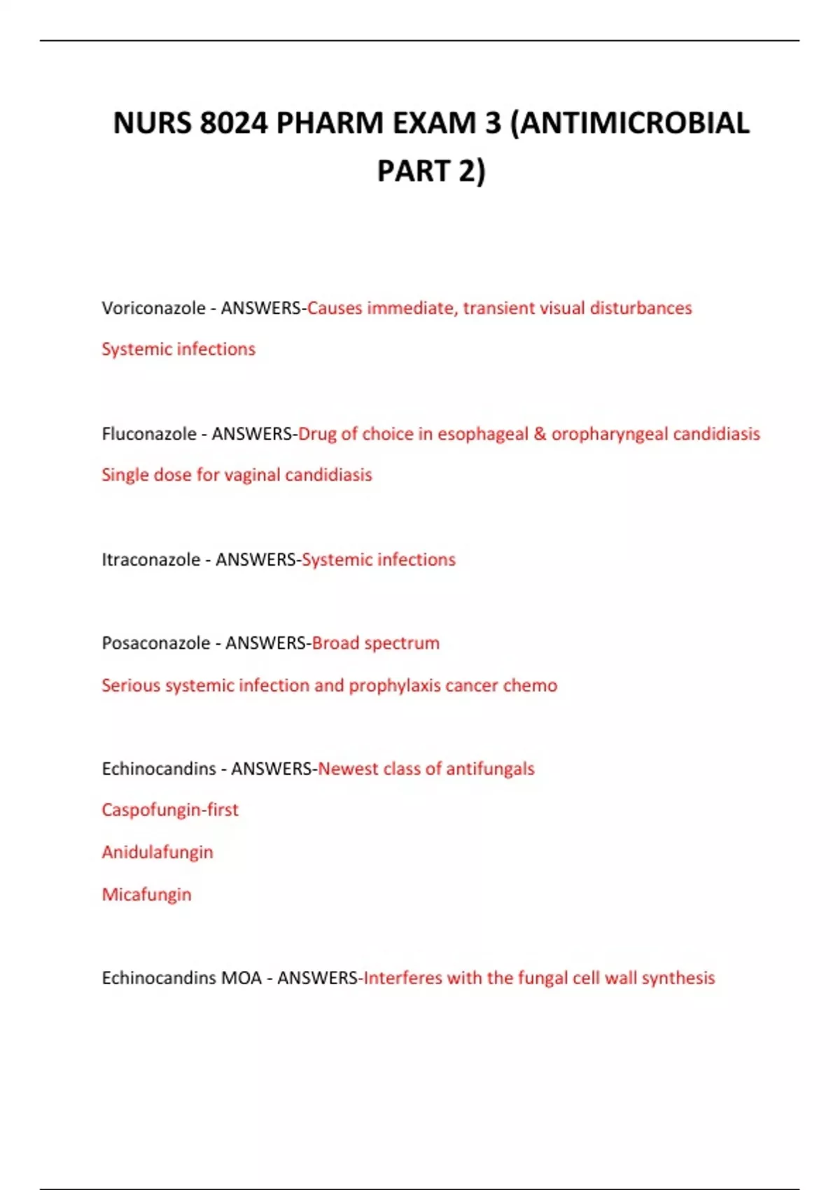 NURS 8024 PHARM EXAM 3 (ANTIMICROBIAL PART 2) QUESTIONS AND ANSWERS 2024