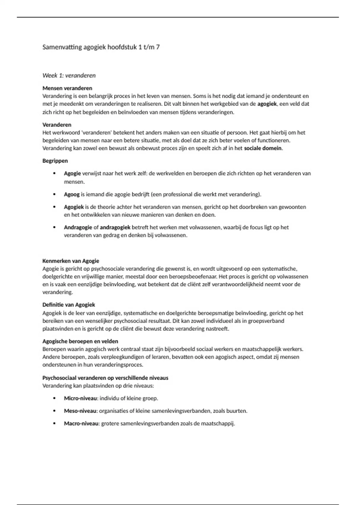 Samenvatting agogiek hoofdstuk 1 t/m 7