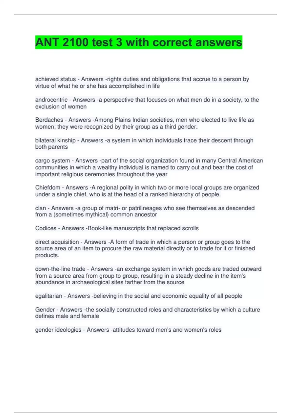 ANT 2100 test 3 with correct answers