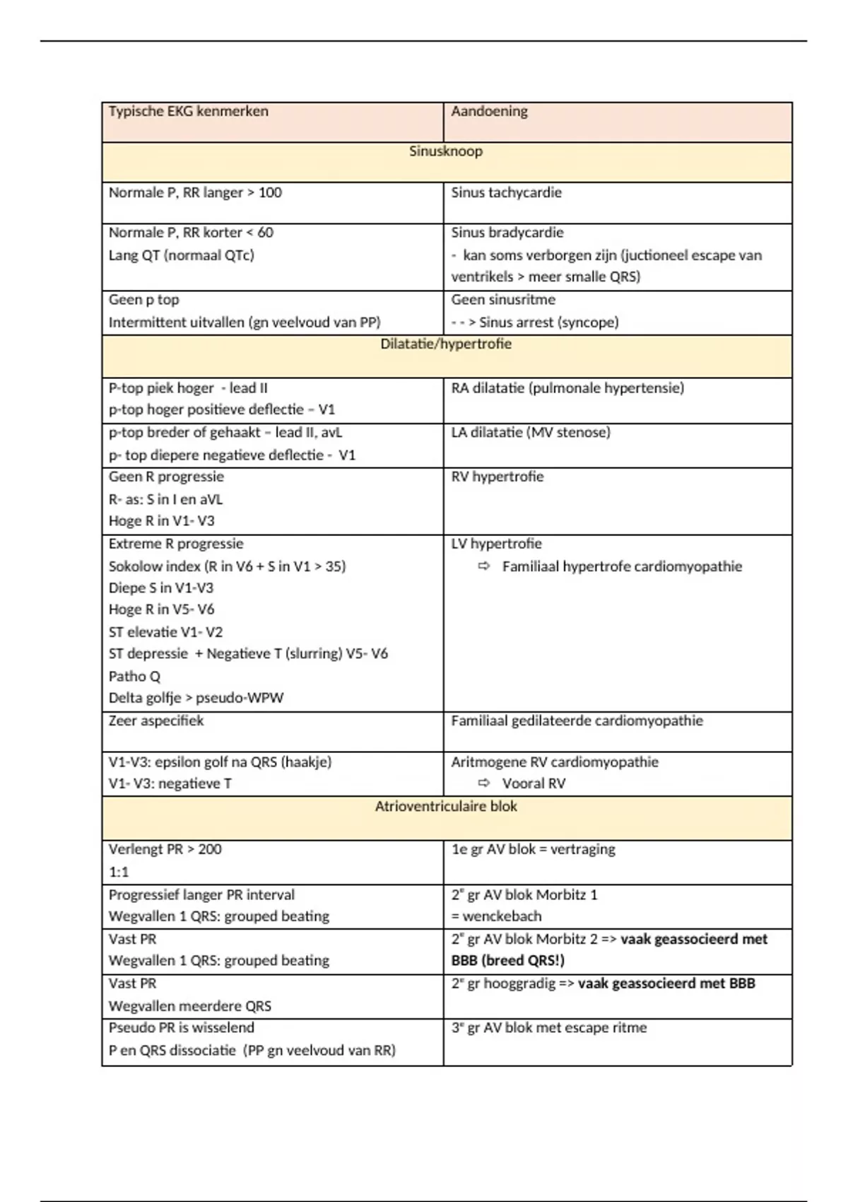 Typische EKG kenmerken Aandoening