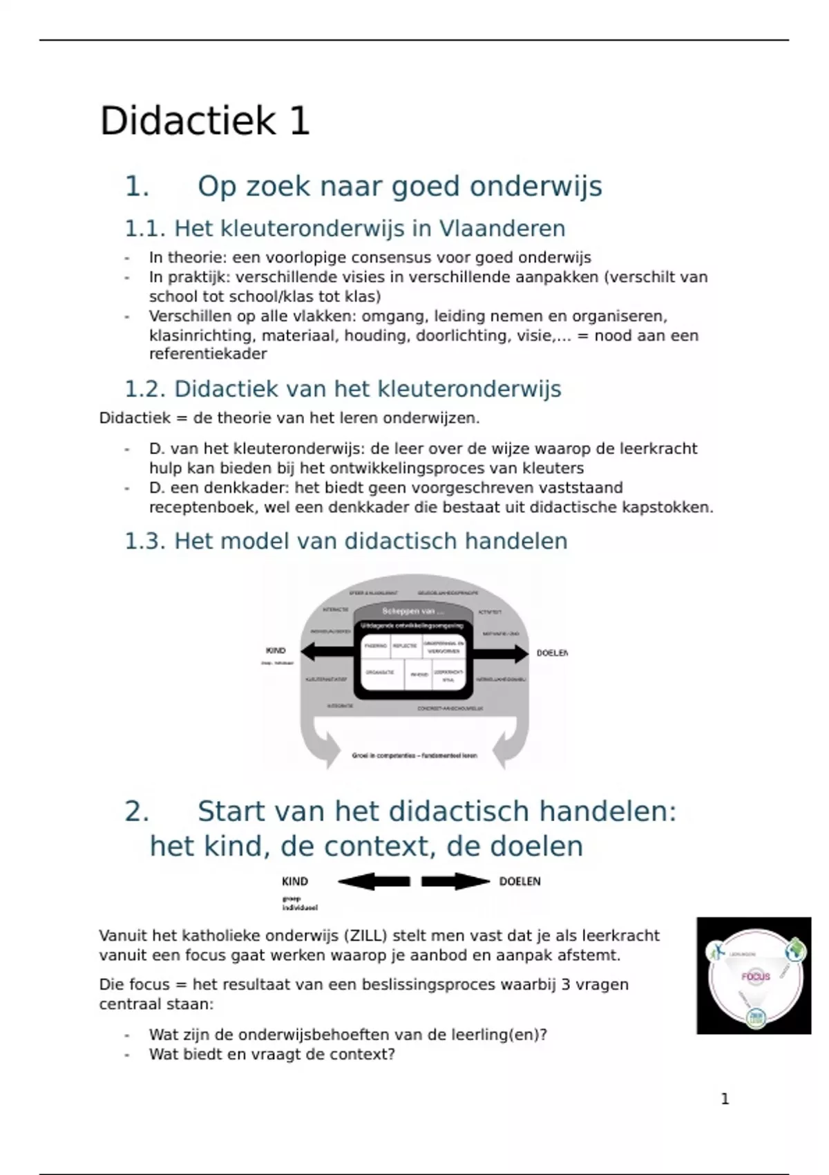 Samenvatting didactiek 1 AO kleuteronderwijs. In de samenvatting zijn alle belangrijke zaken die je moet kennen voor het examen.