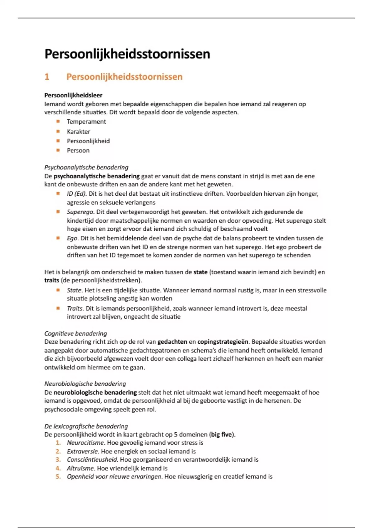 De persoonlijkheid wordt in kaart gebracht op 5 domeinen (big five).