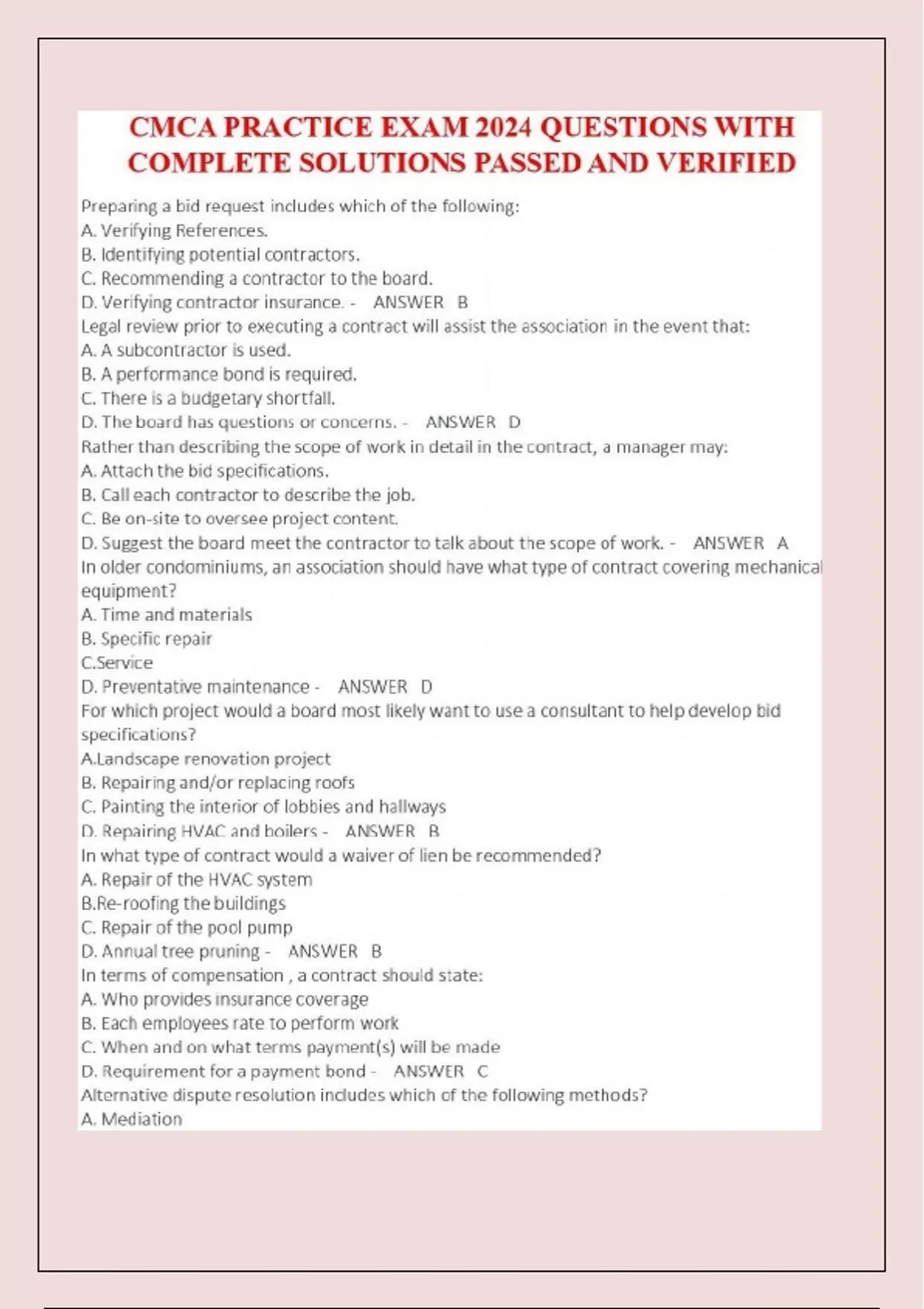 CMCA PRACTICE EXAM 2024 QUESTIONS WITH COMPLETE SOLUTIONS (VERIFIED)