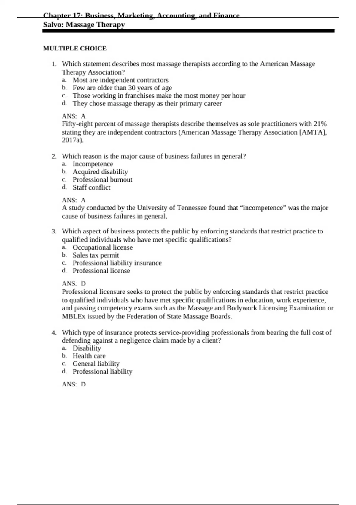 1. Which statement describes most massage therapists according to the American Massage