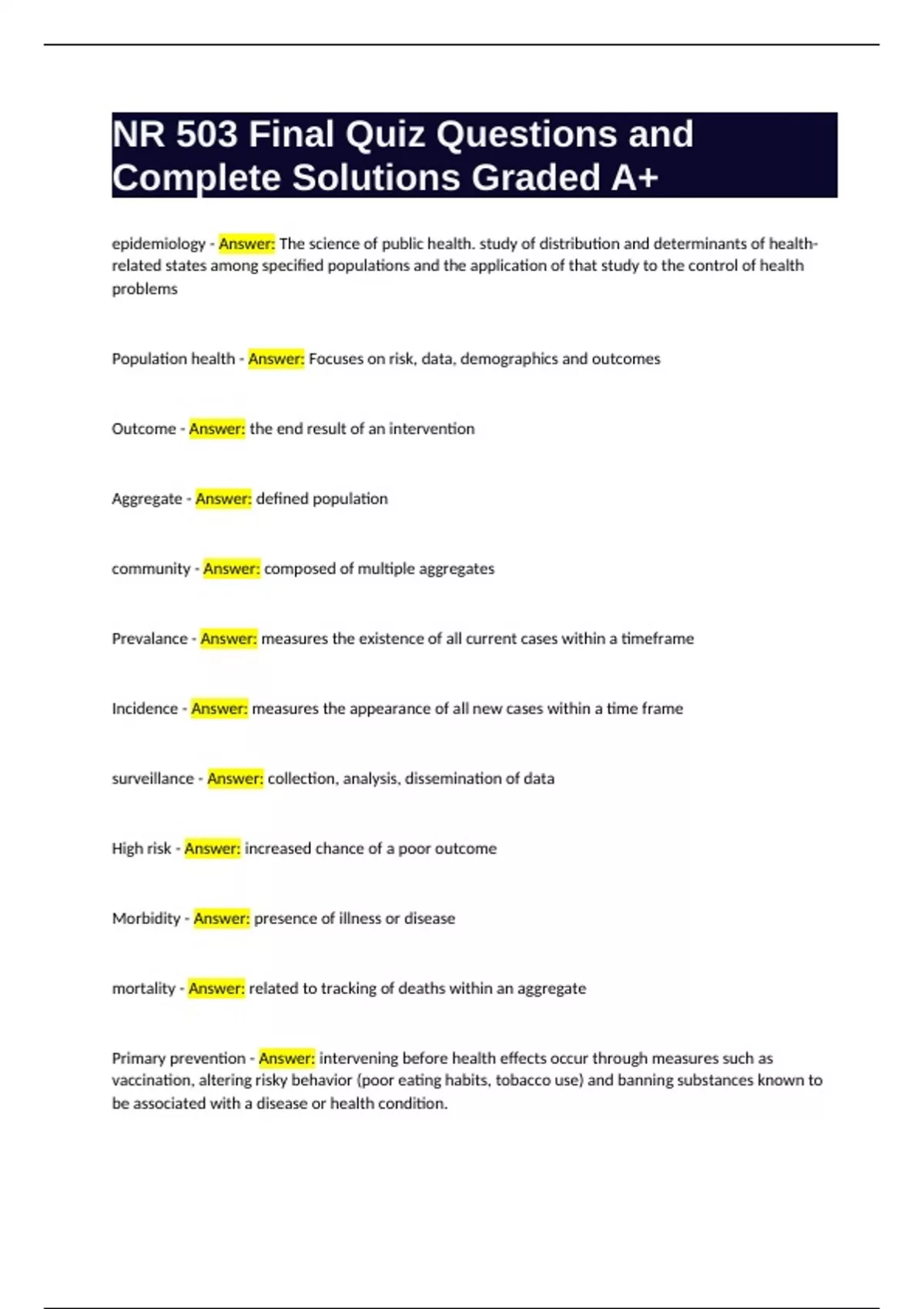 NR 503 Final Quiz Questions and
