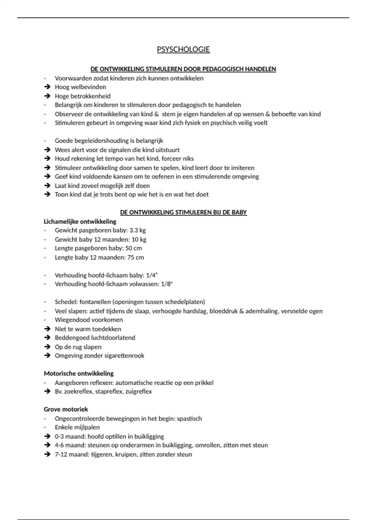 Baby: zintuigen ontwikkelen en leert kruipen & grijpen, hebben behoefte aan rust & structuur