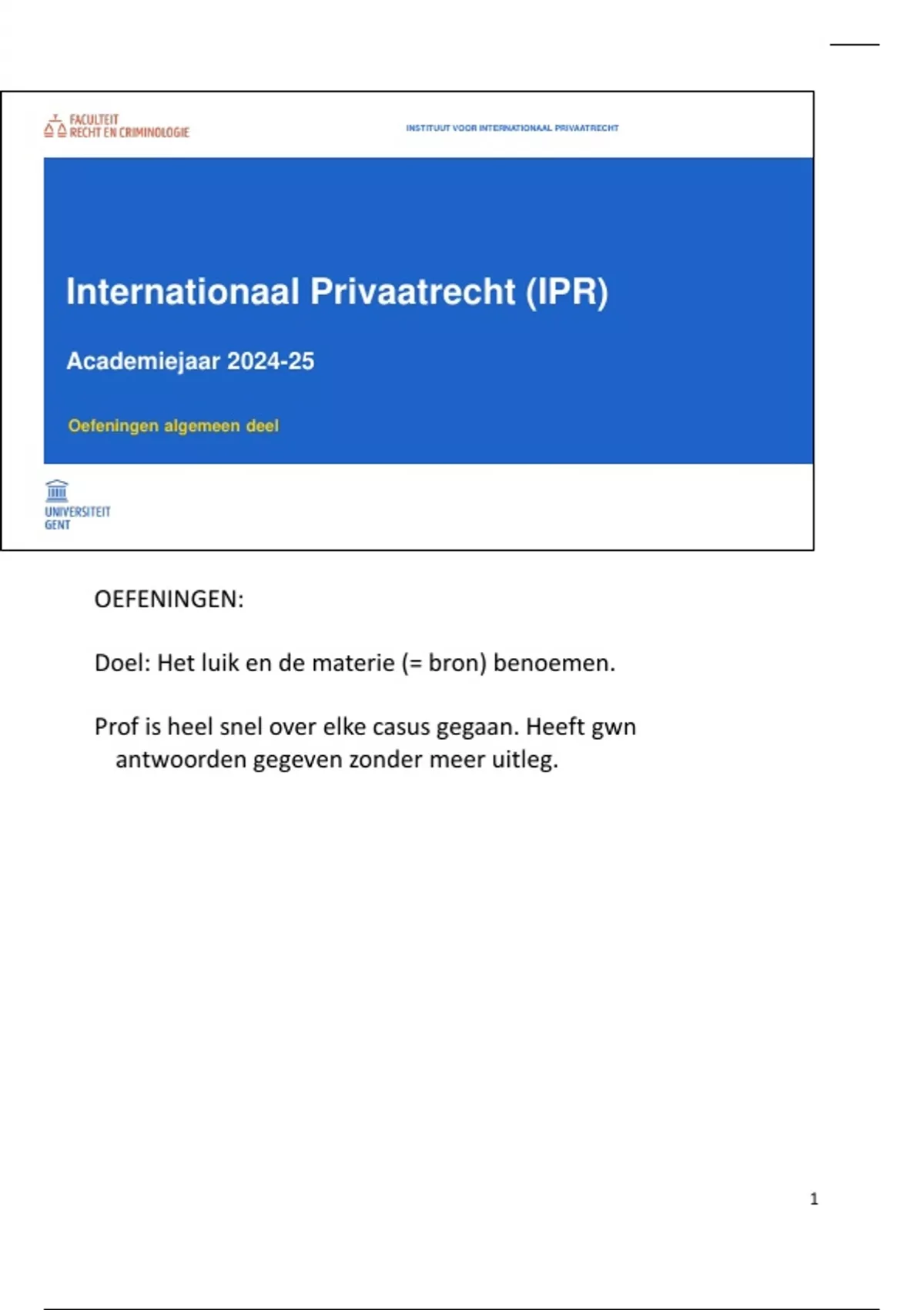 Prof is heel snel over elke casus gegaan. Heeft gwn