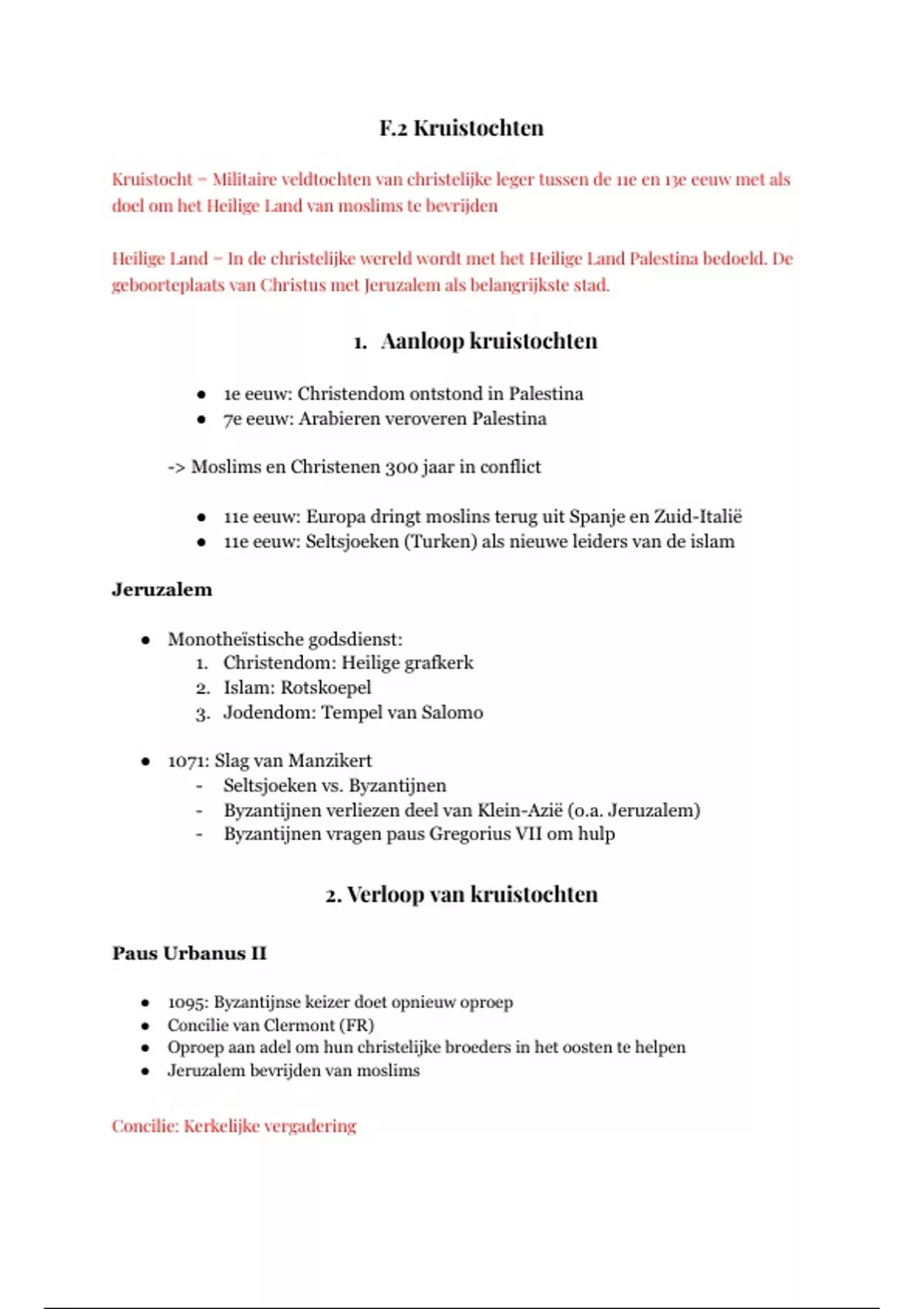 Kruistocht = Militaire veldtochten van christelijke leger tussen de 11e en 13e eeuw met als