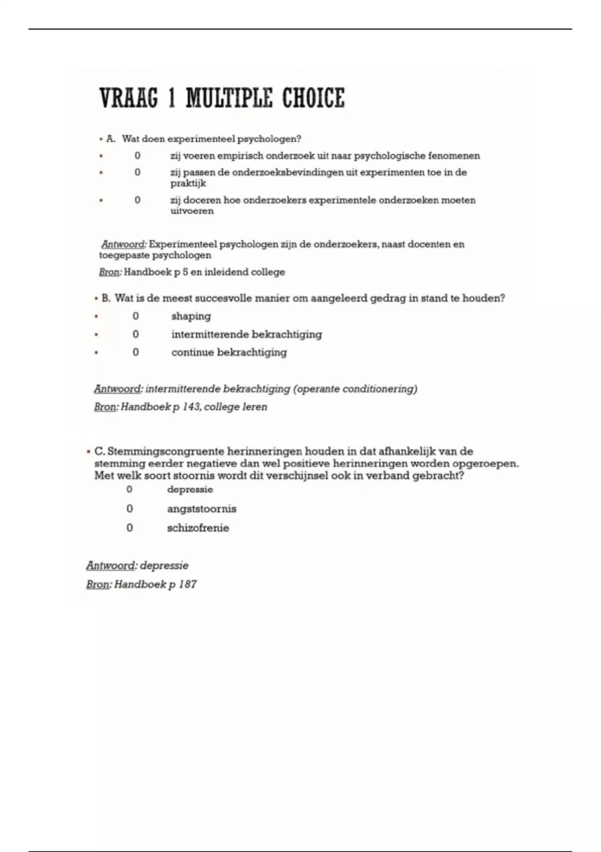 Examenvragen voor het vak Psychologie en Rechtspsyschologie