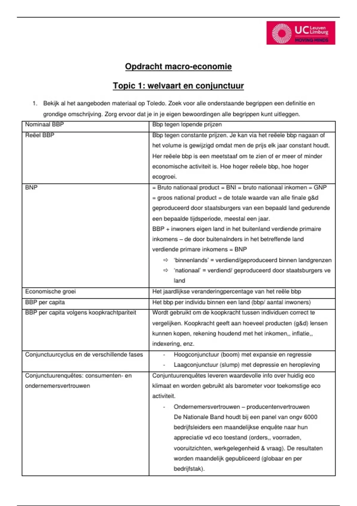 Opdrachten macro economie eerste jaar bedrijfsmanagement UCLL