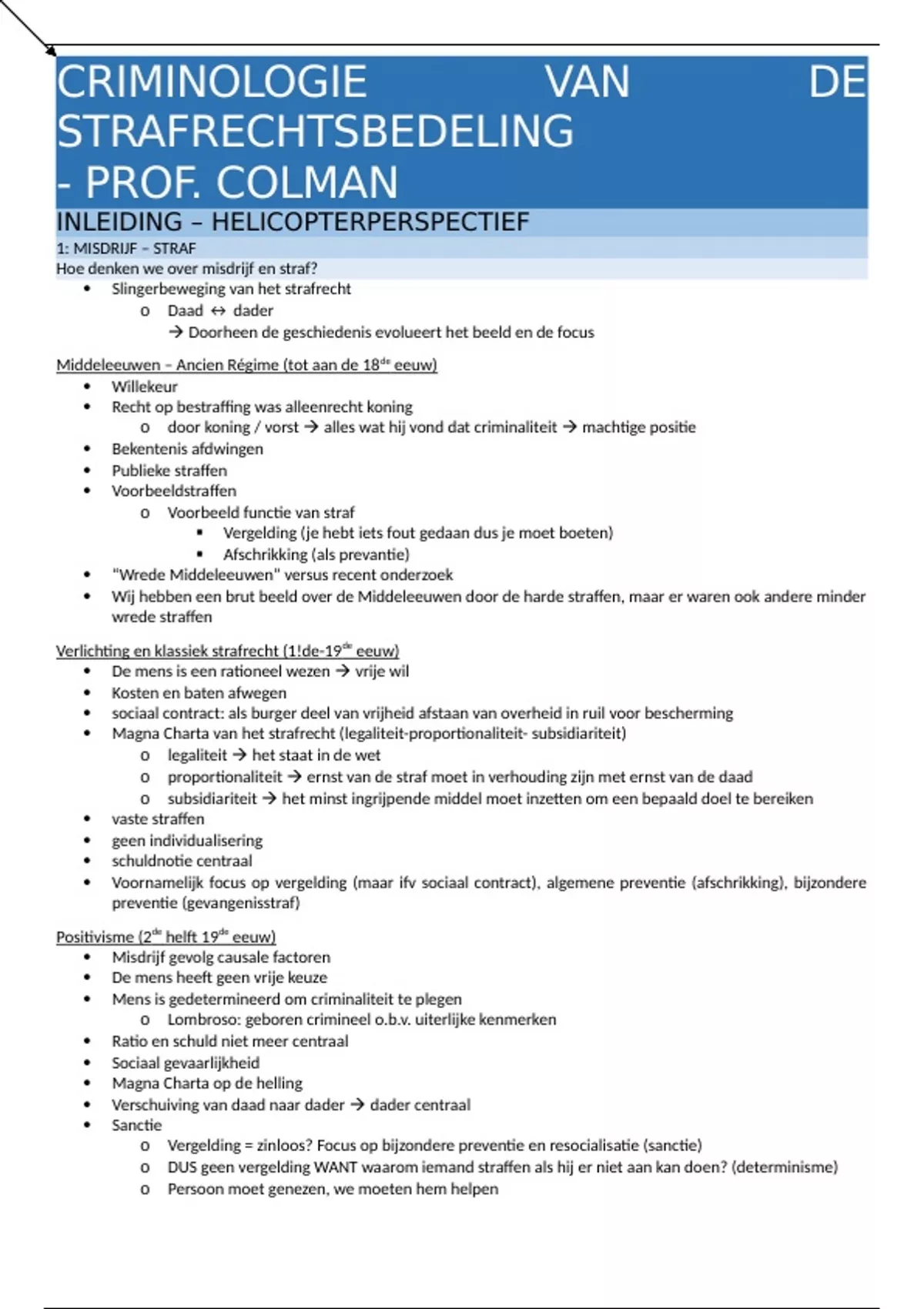 Samenvatting - Criminologie van de strafrechtsbedeling DEEL COLMAN (B001631A)