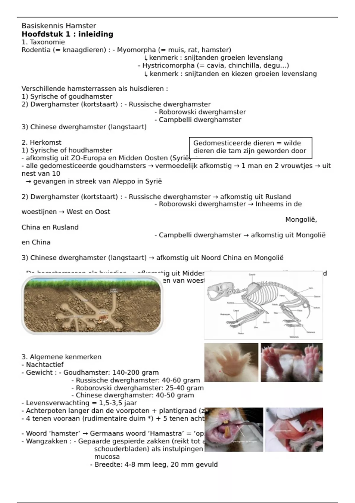 Een samenvatting over de hamster van het vak Basiskennis Bijzondere Huisdieren
