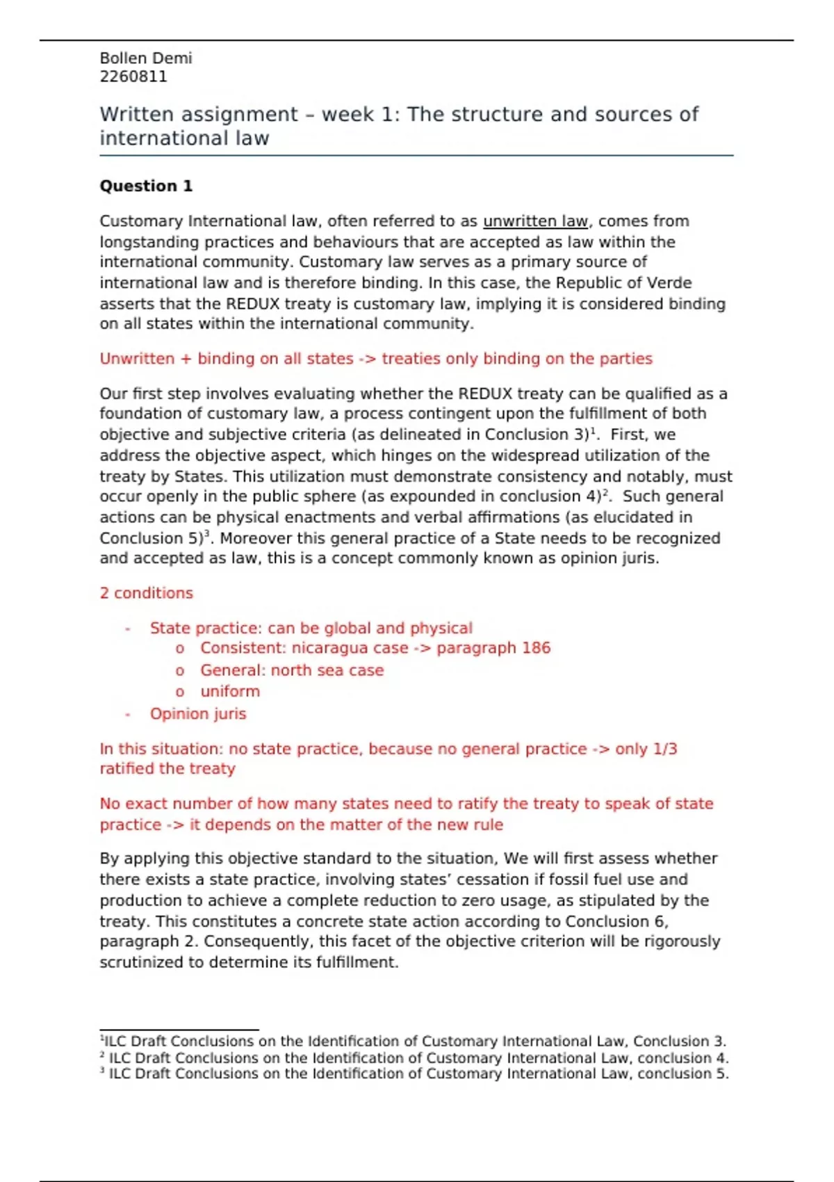 Dit is een uitwerking van assignment 1/ onderwijsgroep 1 van het vak internationaal recht. Het gaat over de bronnen en de structuur van het internationale recht.