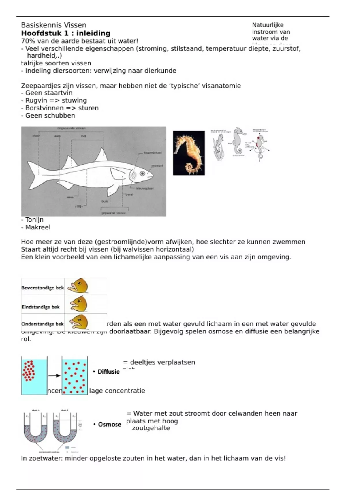 Volledige samenvatting van de leerstof voor het vak Basiskennis Bijzondere Huisdieren specifiek de vissen.