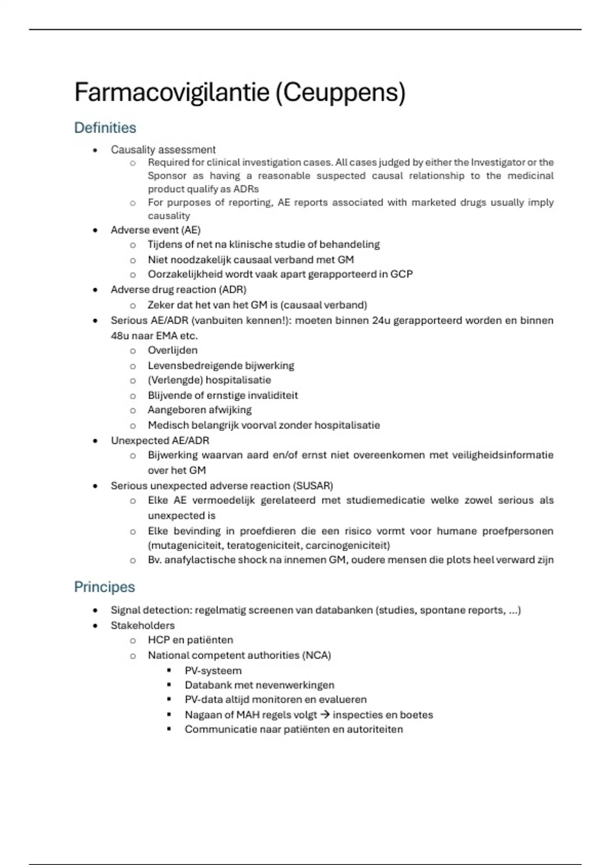 Dit is een samenvatting van de les van gastspreker Ceuppens over farmacovigilantie.