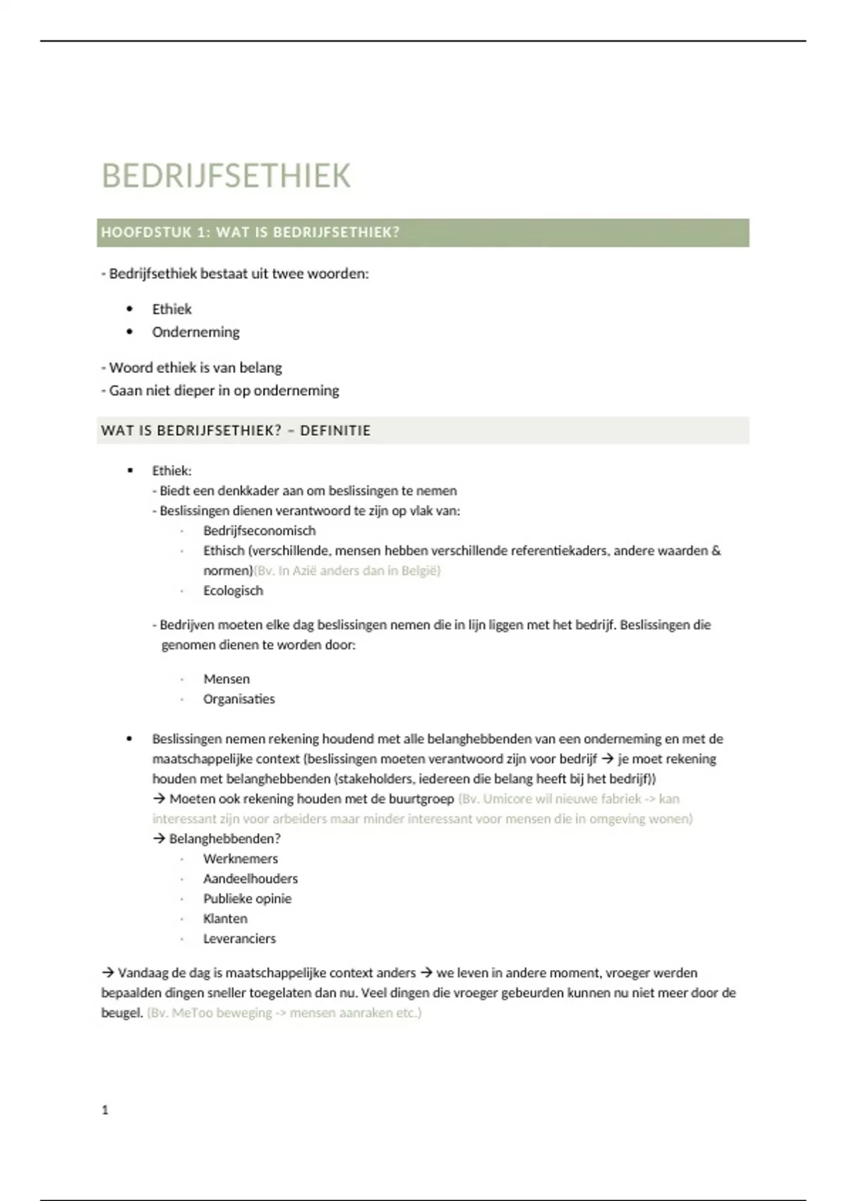 Samenvatting van het vak bedrijfsethiek. In de opleiding ION/IOR aan Karel de Grote Hogeschool