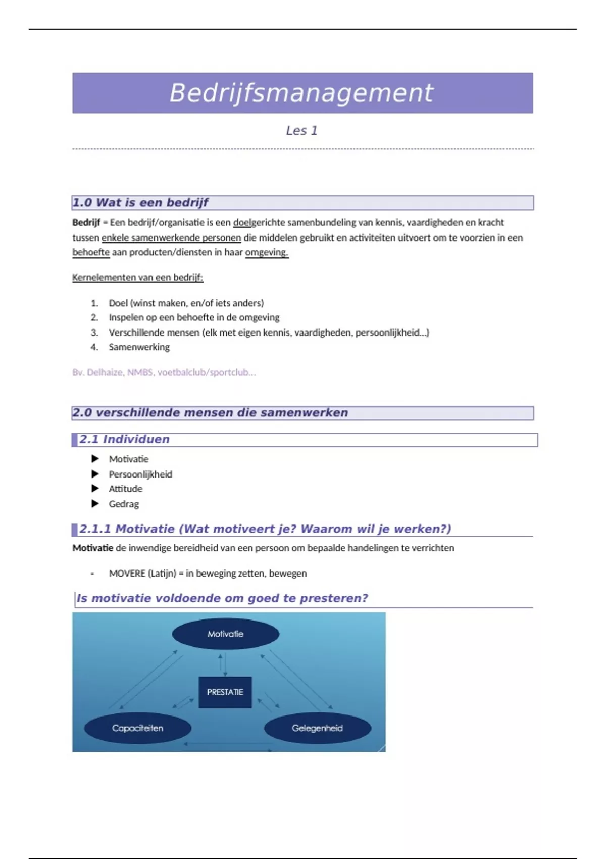 samenvatting van bedrijfsmanagement van opleiding bedrijfsmanagement IOR/ION aan Karel de Grote hogeschool