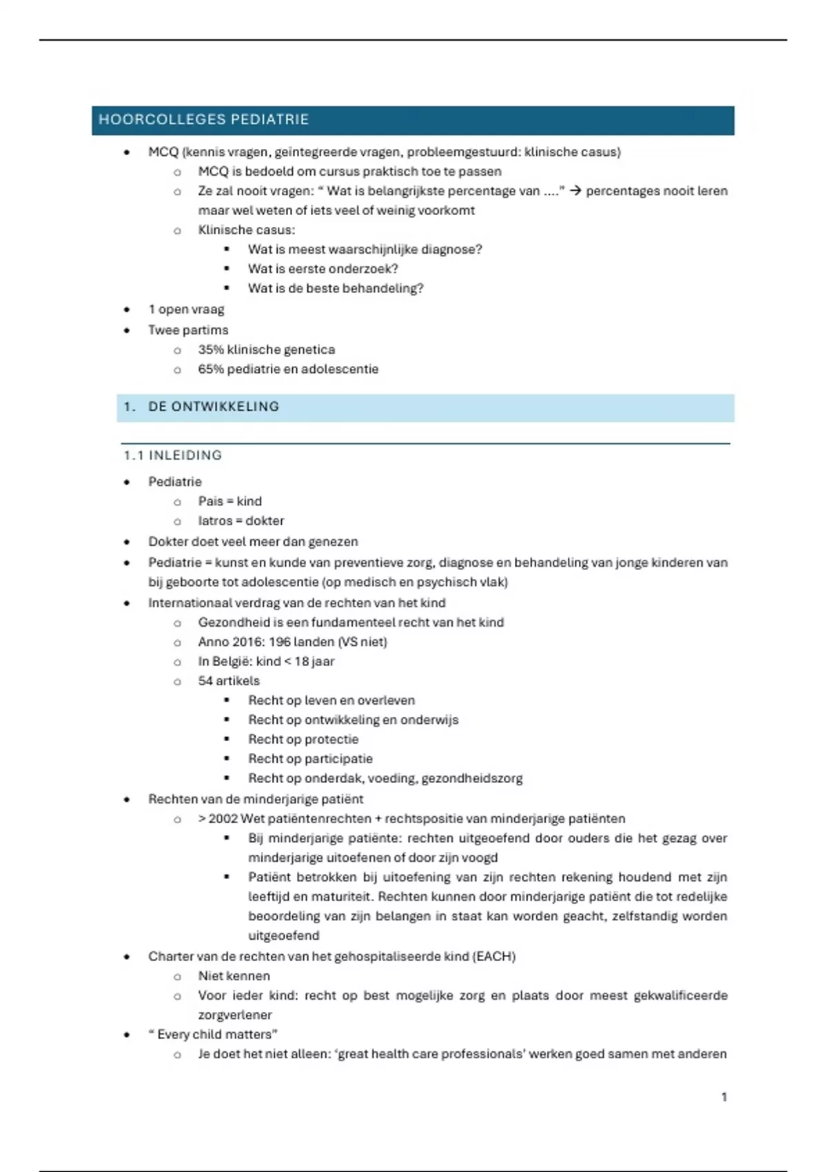 Samenvatting hoorcolleges pediatrie Prof. Raes: samenvatting PTT + noties les