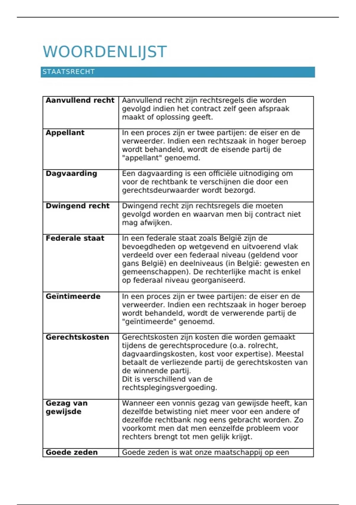 WOORDENLIJST VAN ALLE HOOFDSTUKKEN VAN JURIDISCH CONTEXT
