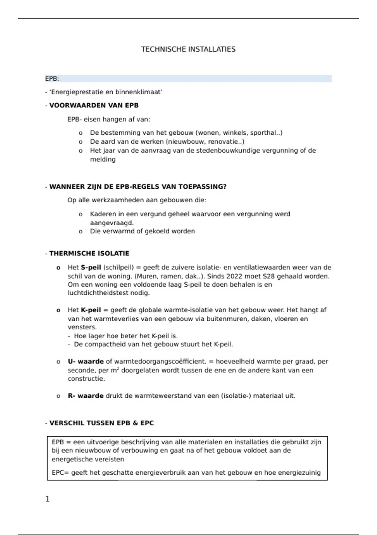 deze samenvatting van het vak technische installaties bevat de themas: EPB: wat is Epb , wat zijn de voorwaarden, Regels rond Epb Verwarming: welke soorten verwarming zijn er? warmtepompen, vloerverwarming radiatoren: hoe werken radiatoren? ventilatie: soorten ventilatiesystemen, hoe best ventileren... dit alles wordt onderbouwd door foto's en afbeeldingen met duidelijke uitleg bij adhv schema's etc.