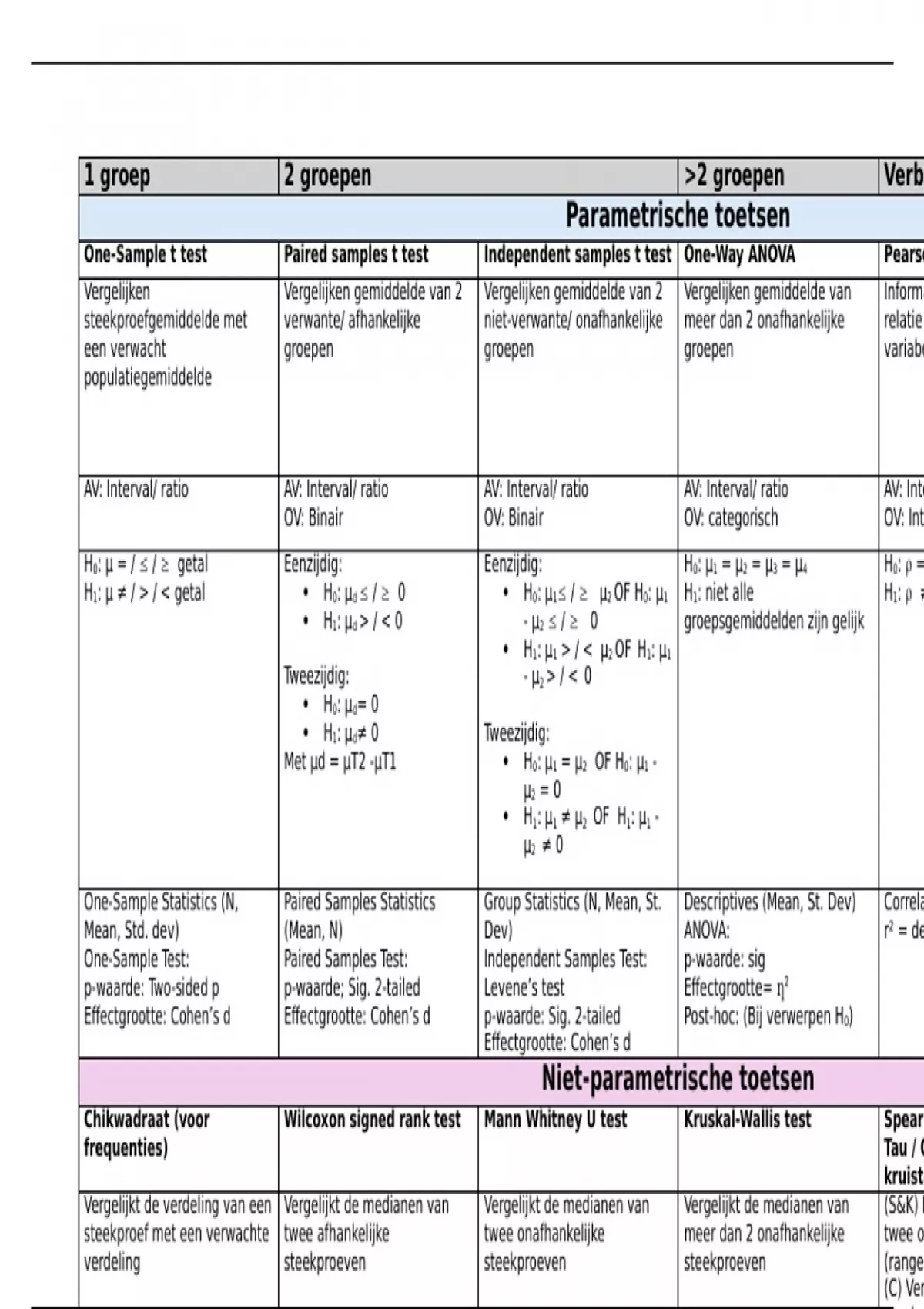 H1: µ ≠ / > / < getal H0: µd / 0 H0: µ1 / µ2 OF H0: µ1 H1: niet alle H1: ≠