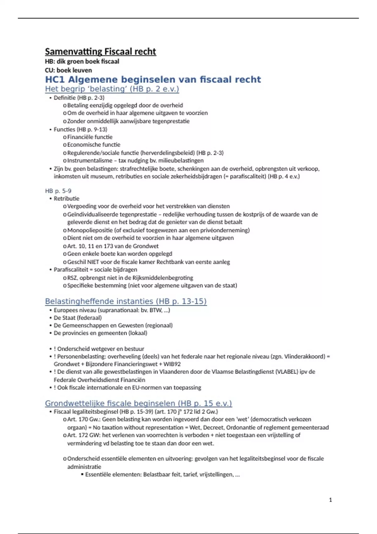 HC1 Algemene beginselen van fiscaal recht