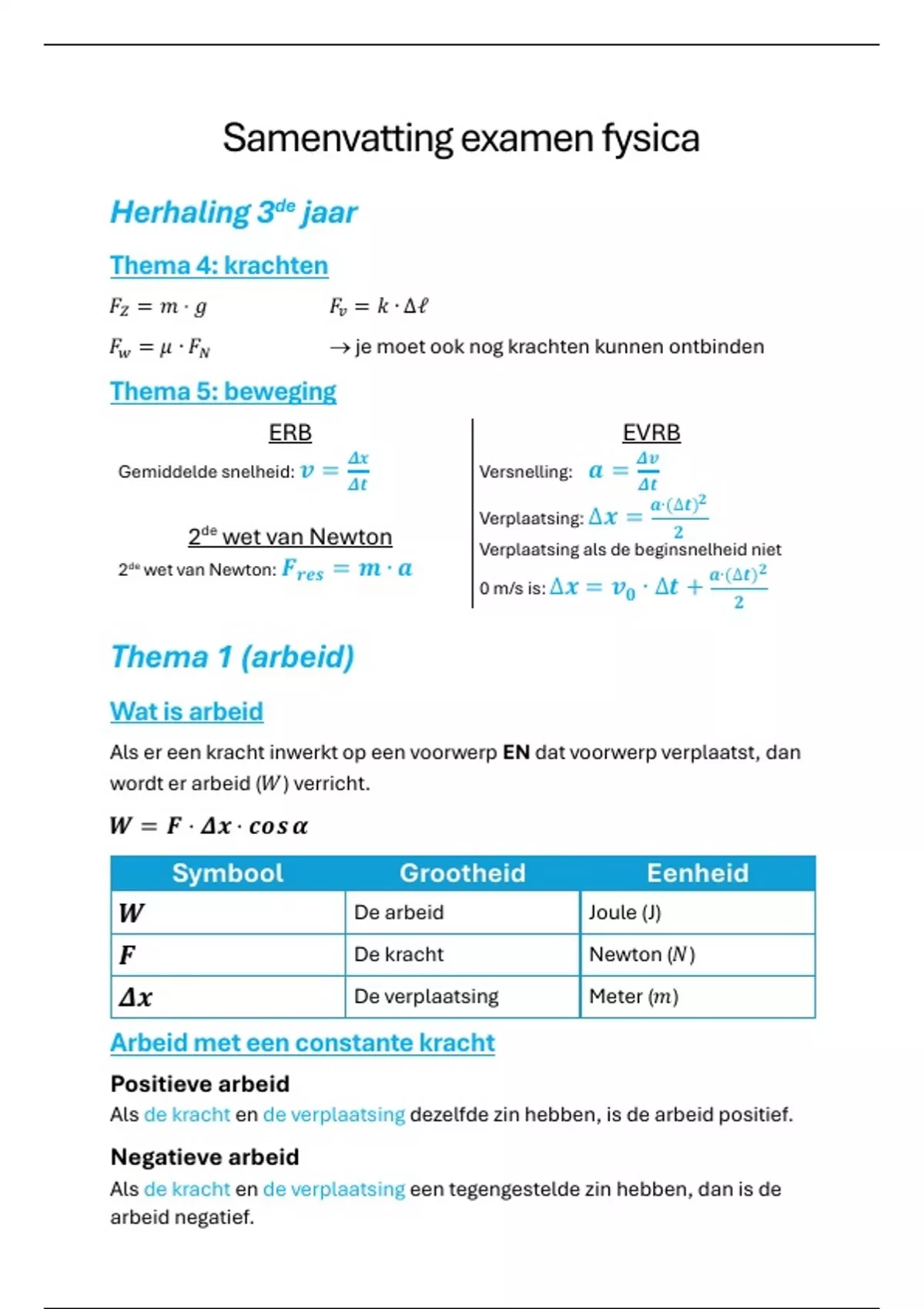 De arbeid (𝑾) verricht door de veerkracht (𝐹𝑣 ) is: