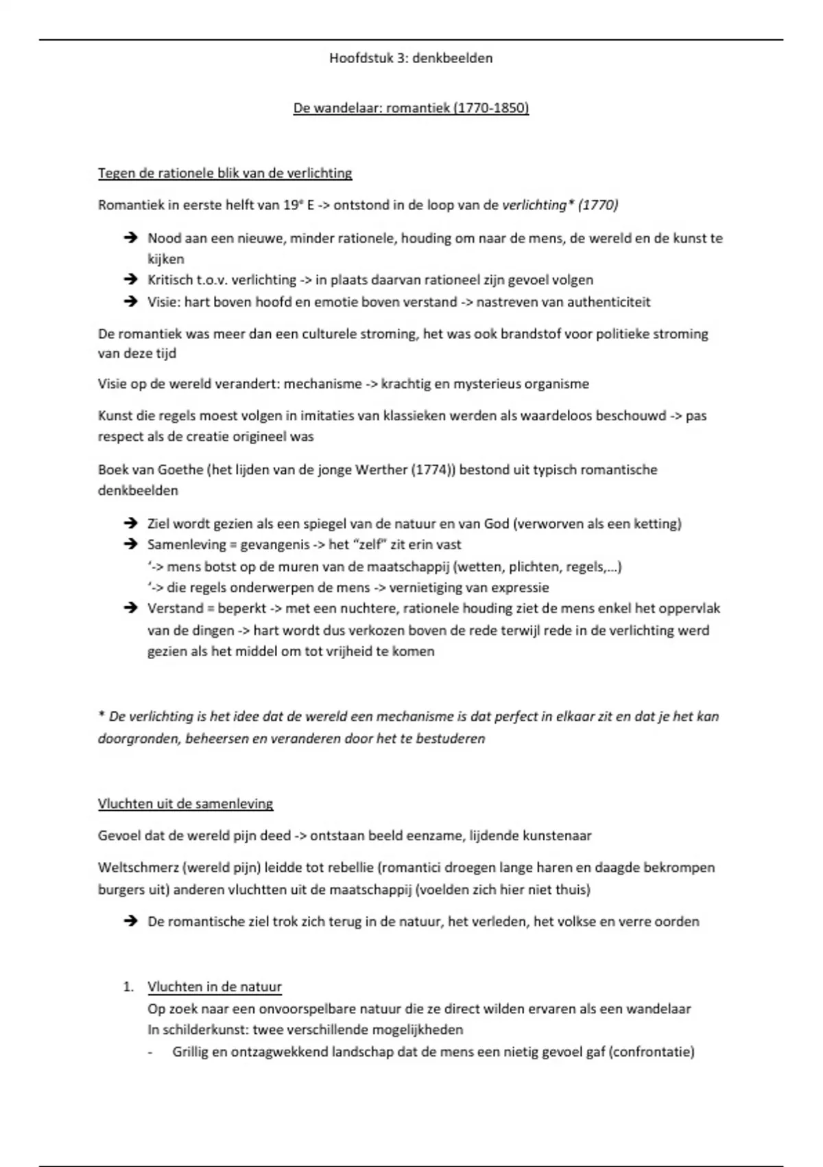 samenvatting hoofdstuk 3 denkbeelden + de tijden - romantiek - positivisme - schilderkunst - fin de siècle - architectuur