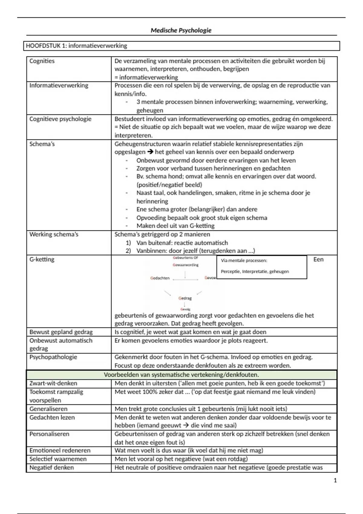 Psychopathologie Gekenmerkt door fouten in het G-schema. Invloed op emoties en gedrag.