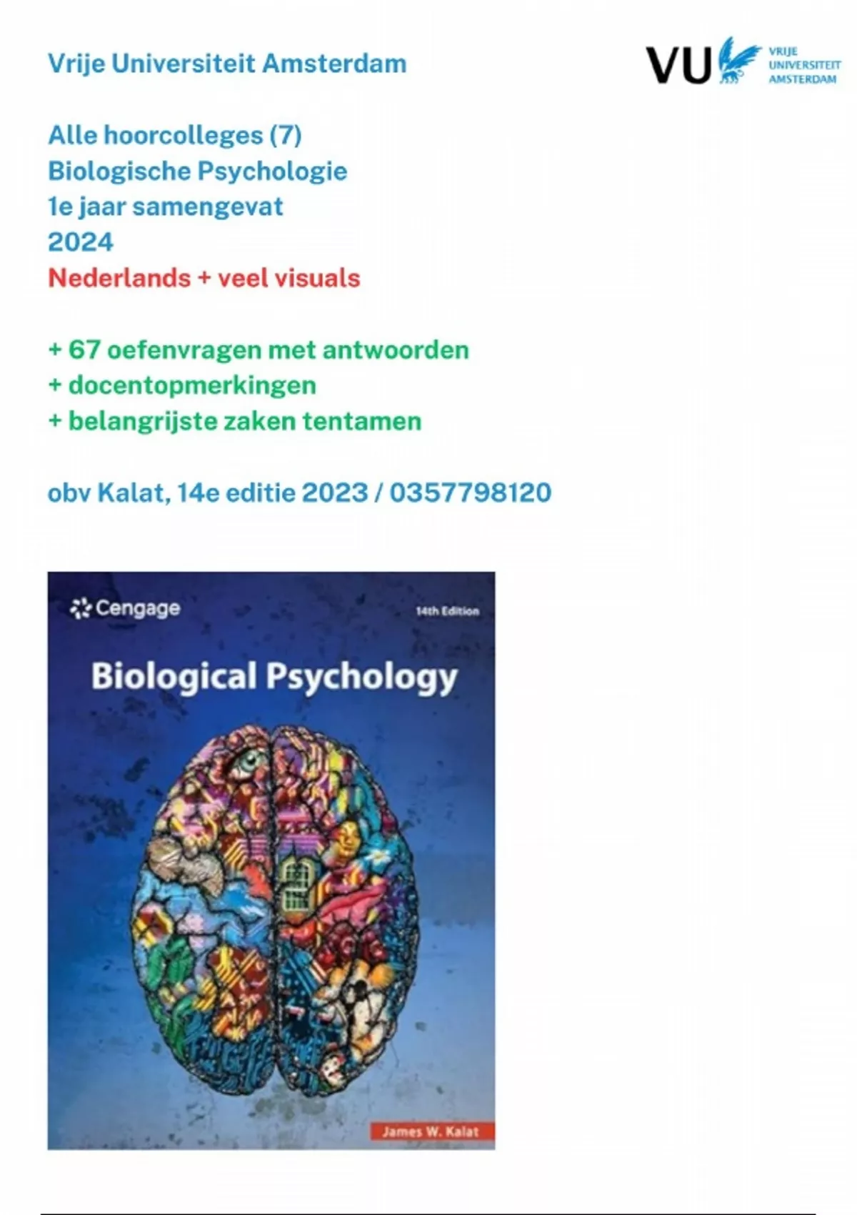,Aantekeningen biologische psychologie hc 1 2025