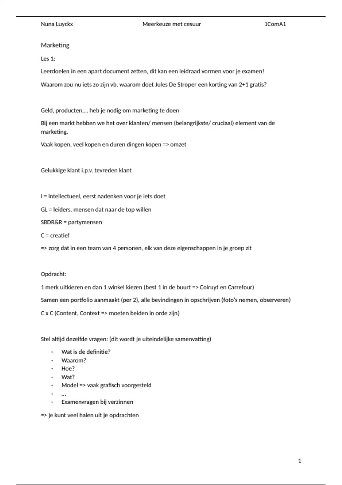 Leerdoelen in een apart document zetten, dit kan een leidraad vormen voor je examen!