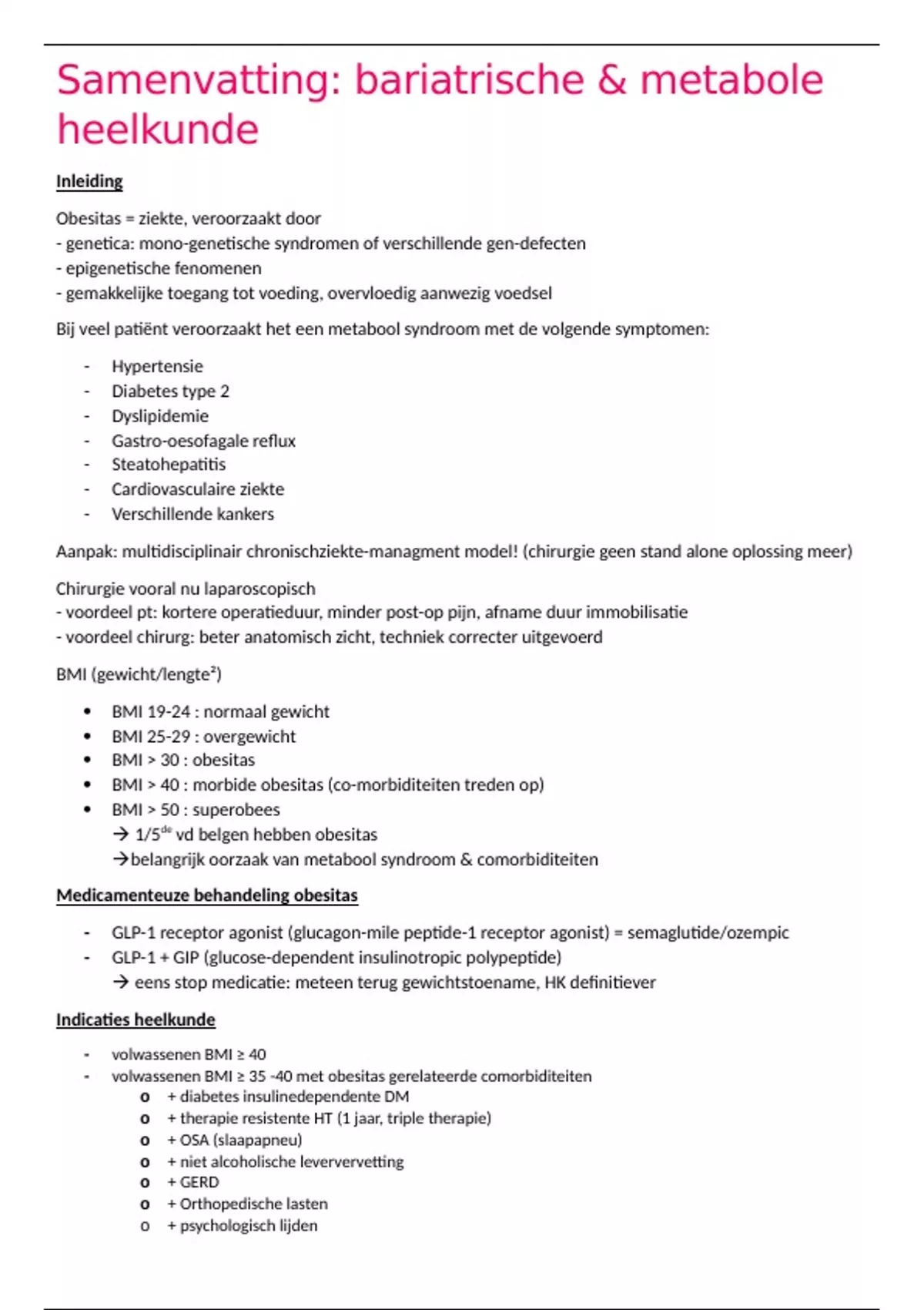 - volwassenen BMI ≥ 35 -40 met obesitas gerelateerde comorbiditeiten
