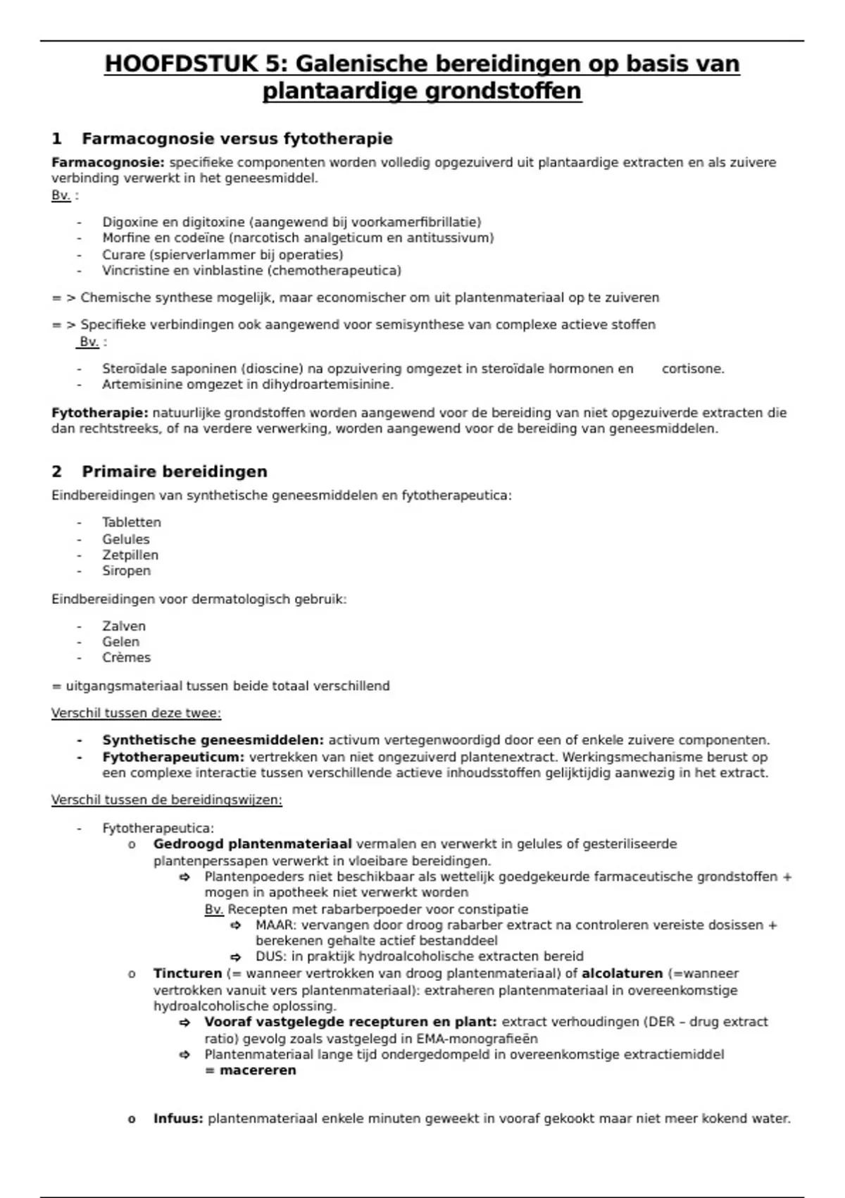 HOOFDSTUK 5: Galenische bereidingen op basis van