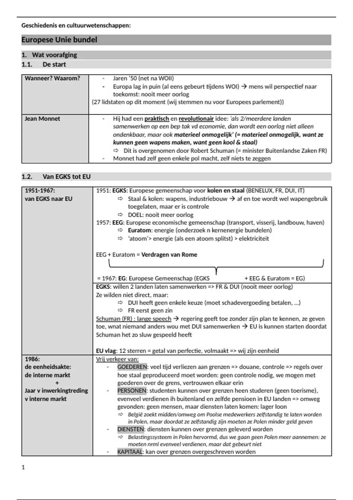 EGKS: willen 2 landen laten samenwerken => FR & DUI (nooit meer oorlog)