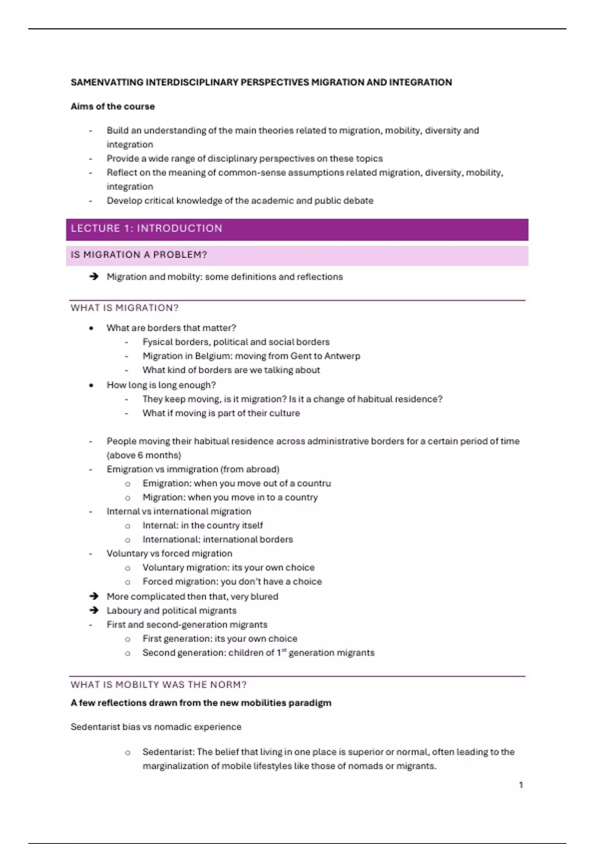 SAMENVATTING INTERDISCIPLINARY PERSPECTIVES MIGRATION AND INTEGRATION