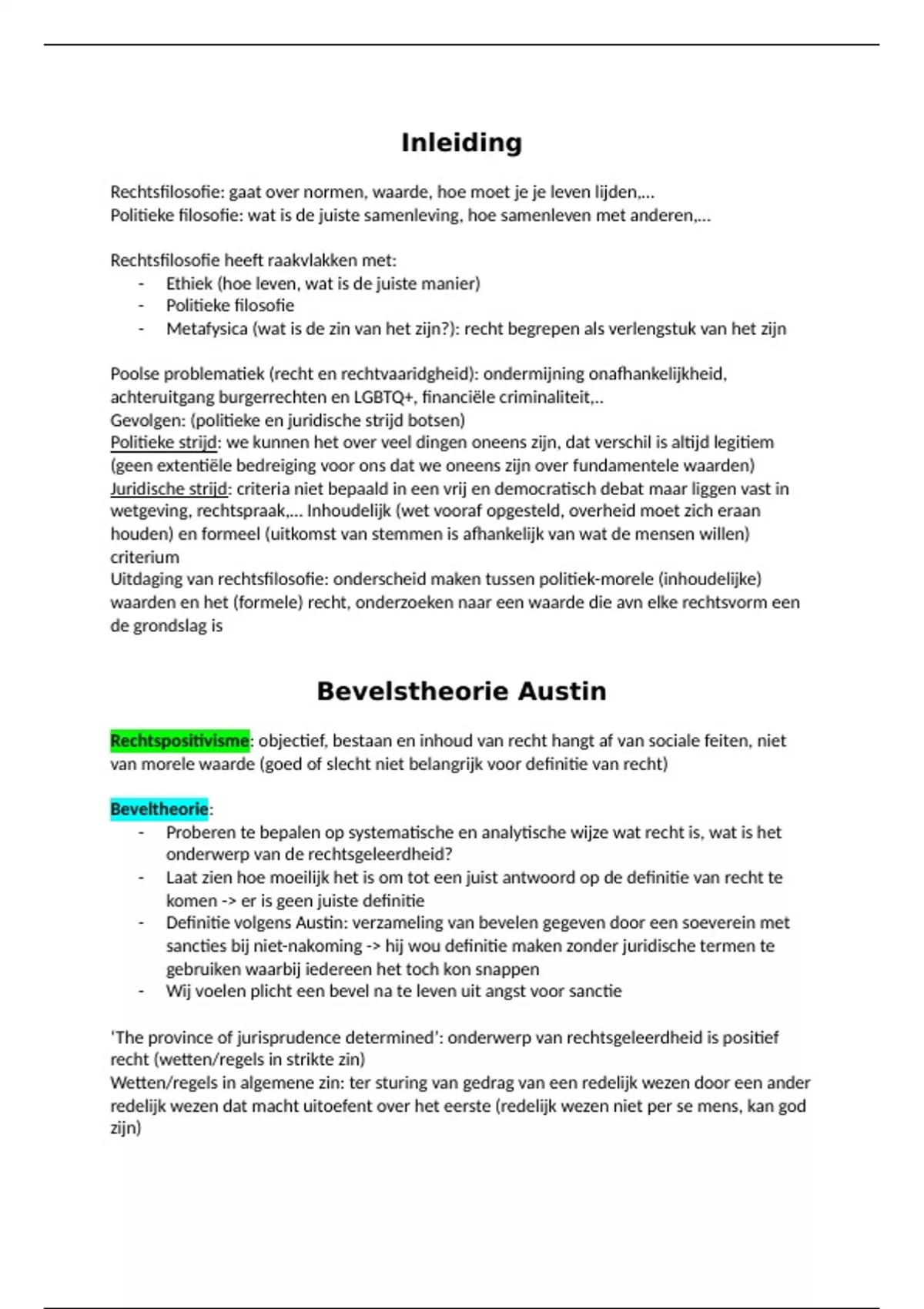 - Austin sluit aantal gebieden uit (bv gewoonterecht en internationaal recht) want die