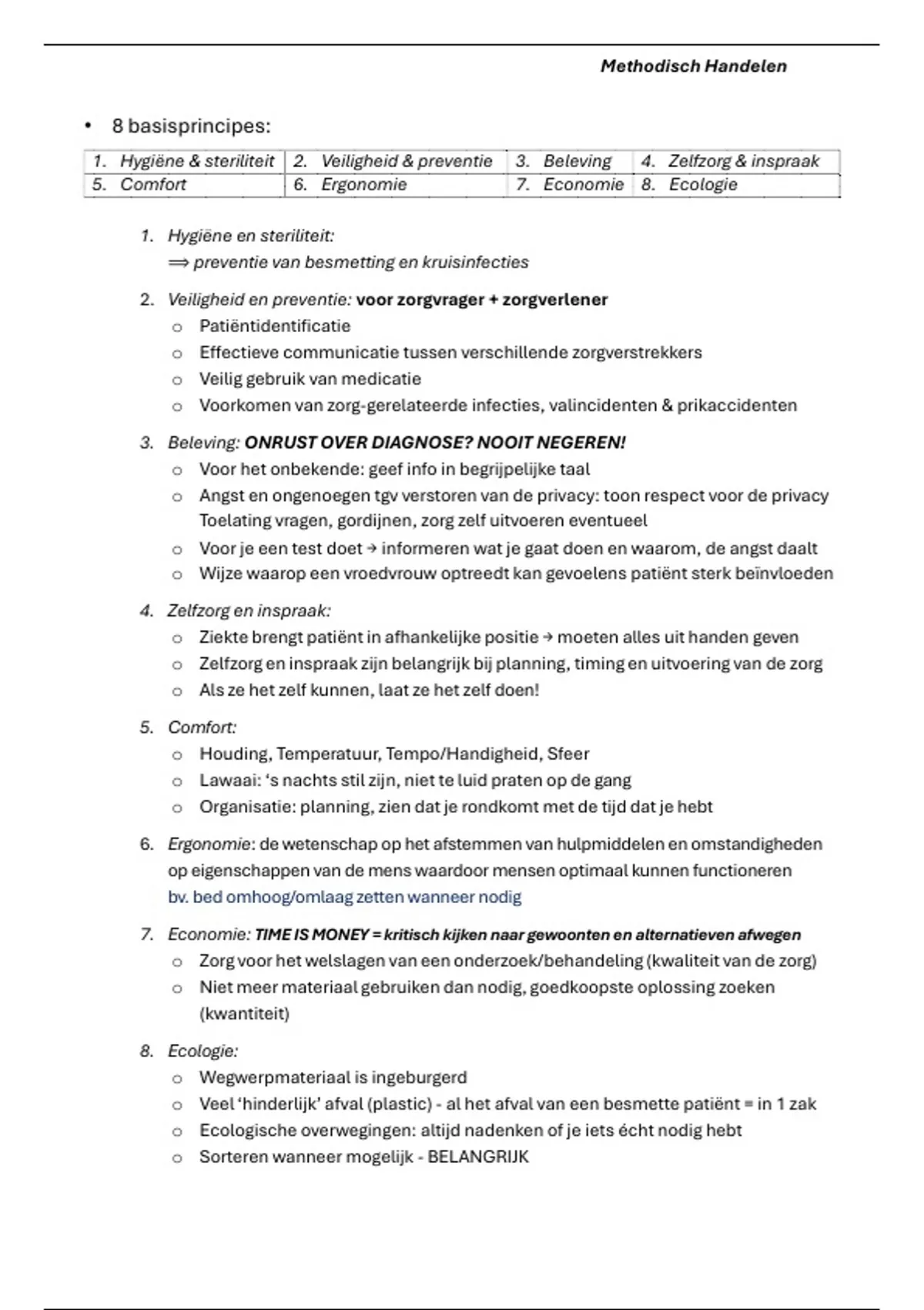 o Zorg voor het welslagen van een onderzoek/behandeling (kwaliteit van de zorg)
