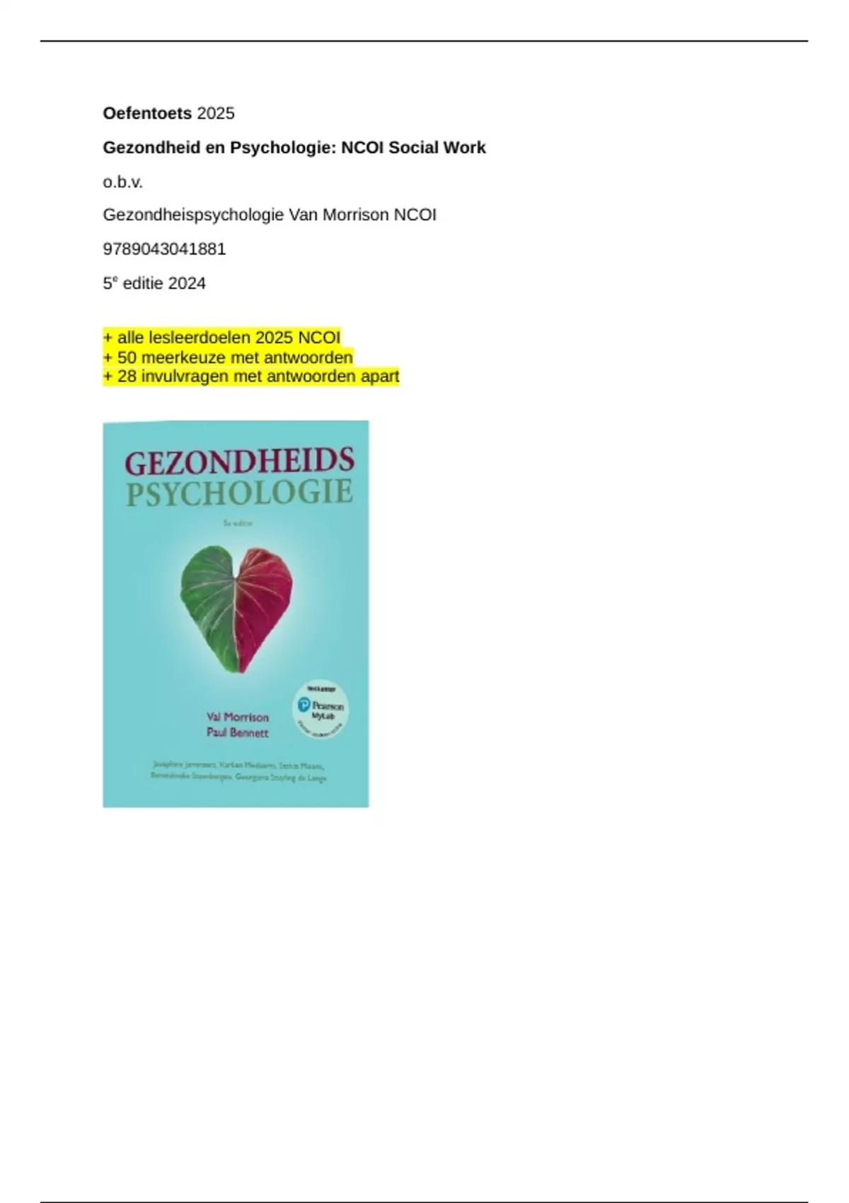 Gezondheidspsychologie Val Morrison NCOI