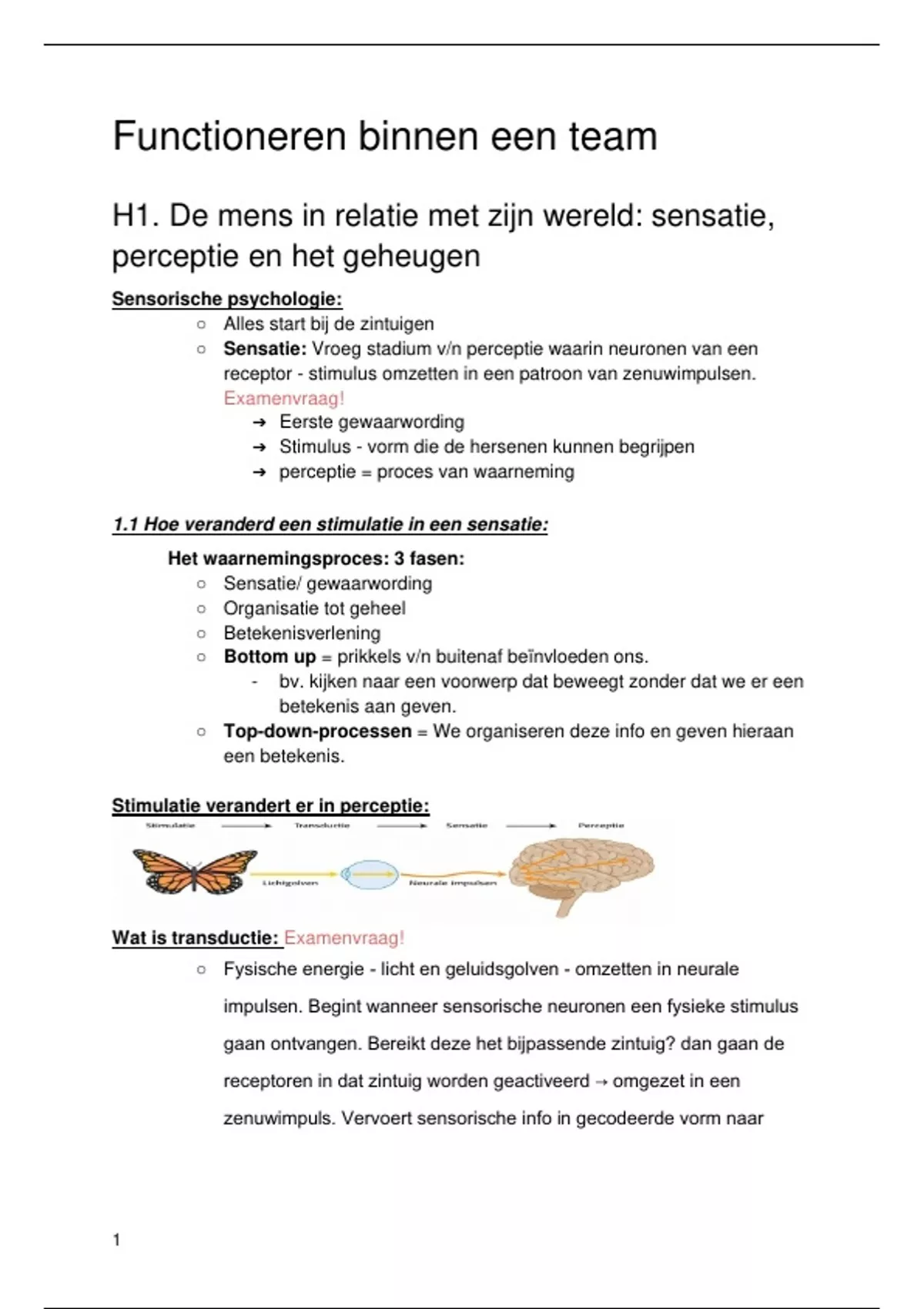 Samenvatting Functioneren binnen een team - erik (slaap, leren, geheugen)