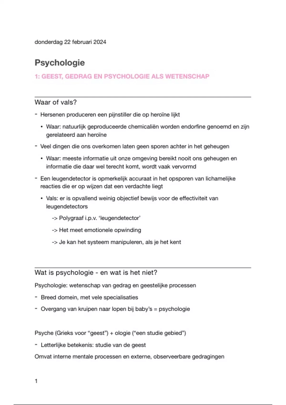 1: GEEST, GEDRAG EN PSYCHOLOGIE ALS WETENSCHAP