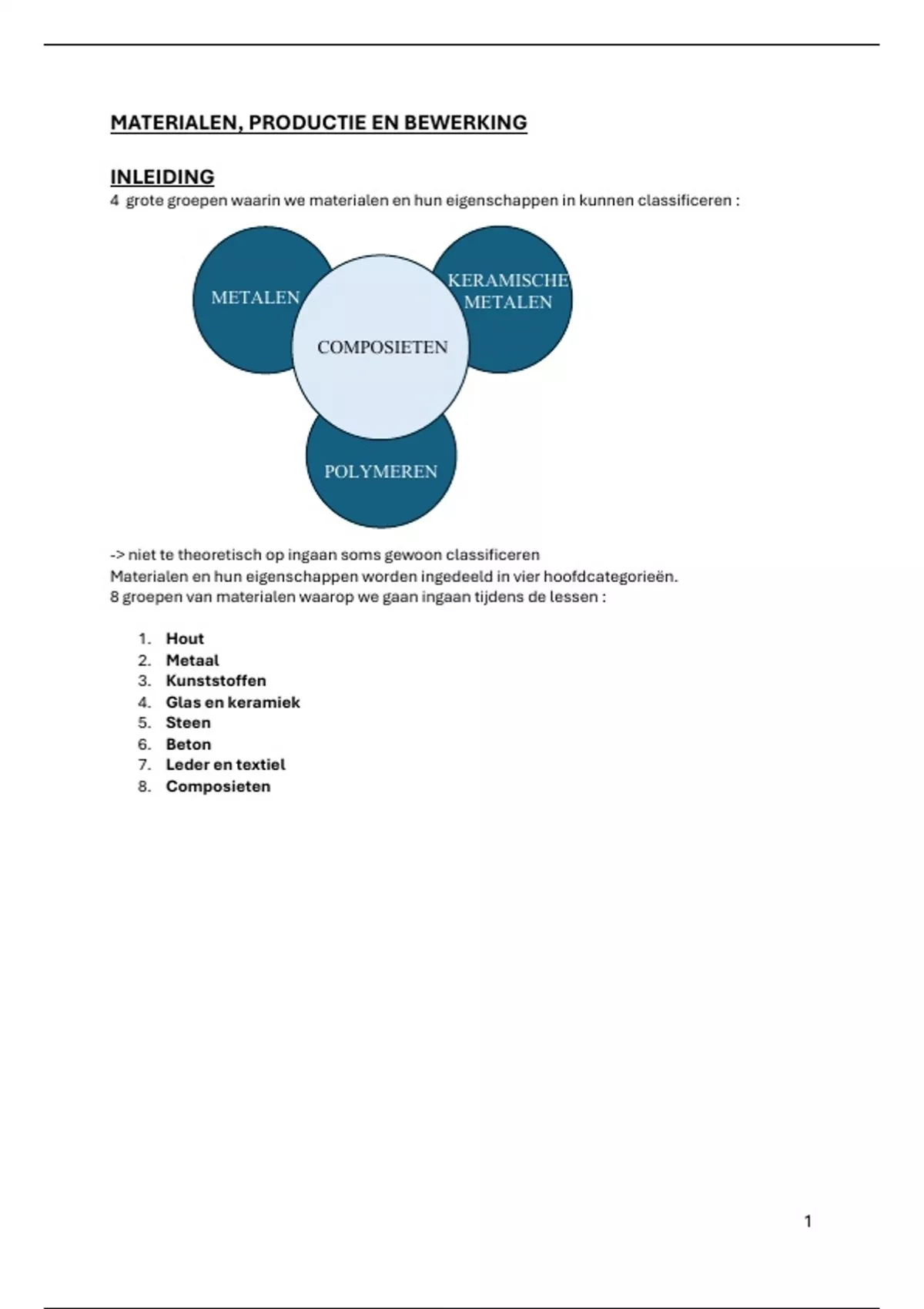 8 groepen van materialen waarop we gaan ingaan tijdens de lessen :
