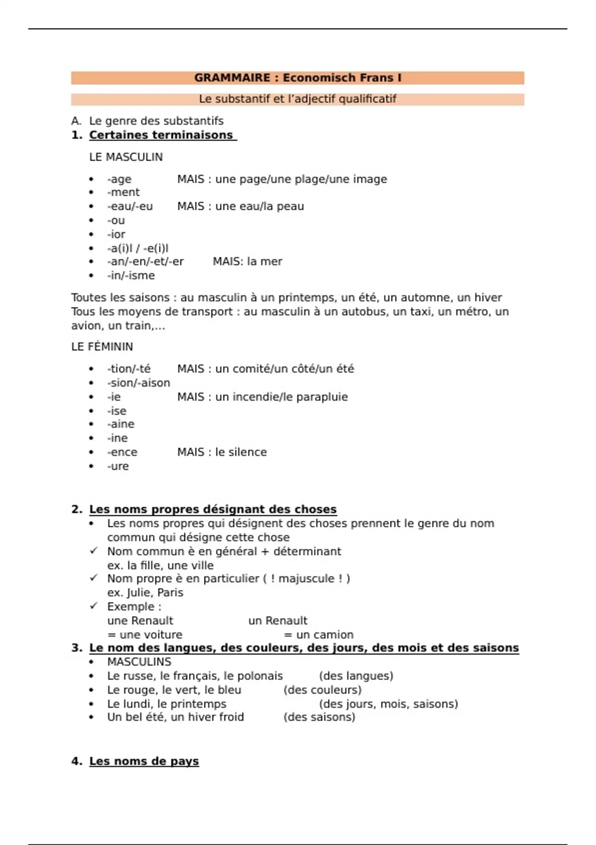 ex. la France, l’Allemagne ex. un film français, une voiture