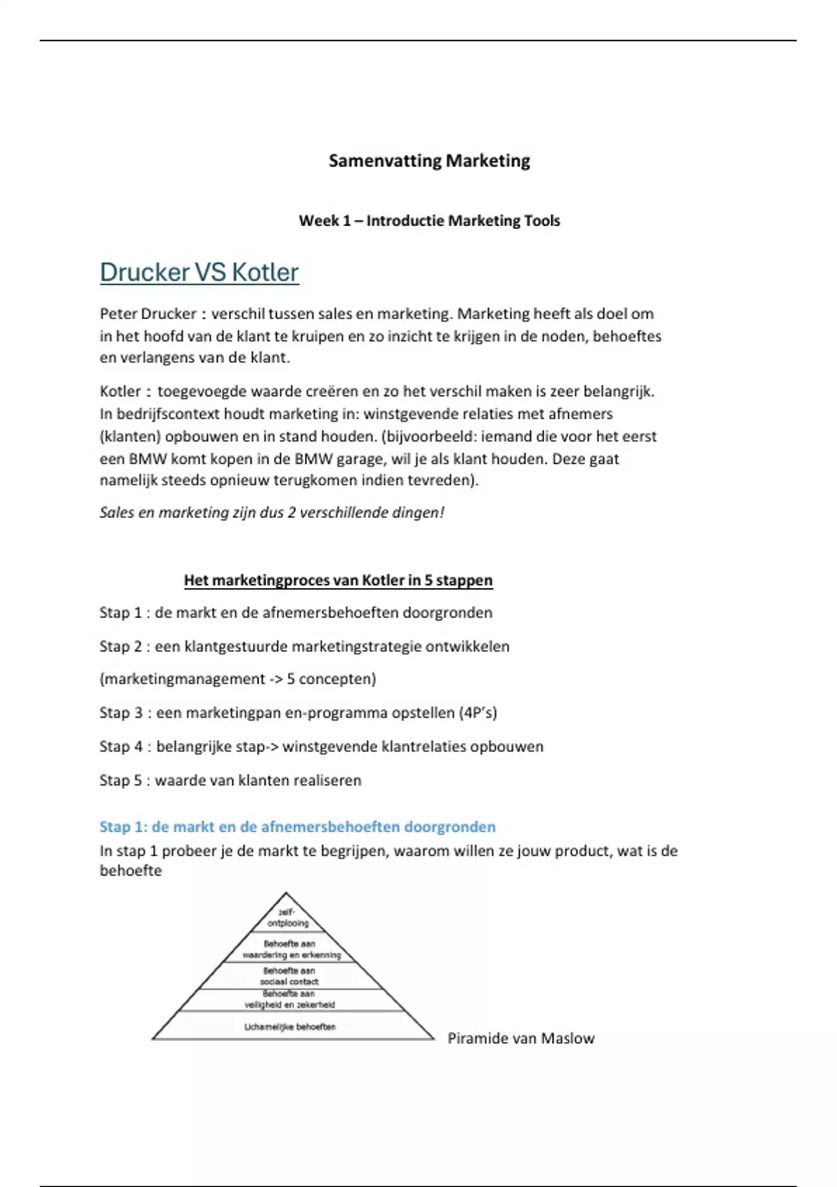 Samenvatting voor marketing tools 1 voor de richting marketing-en communicatiesupport op PXL